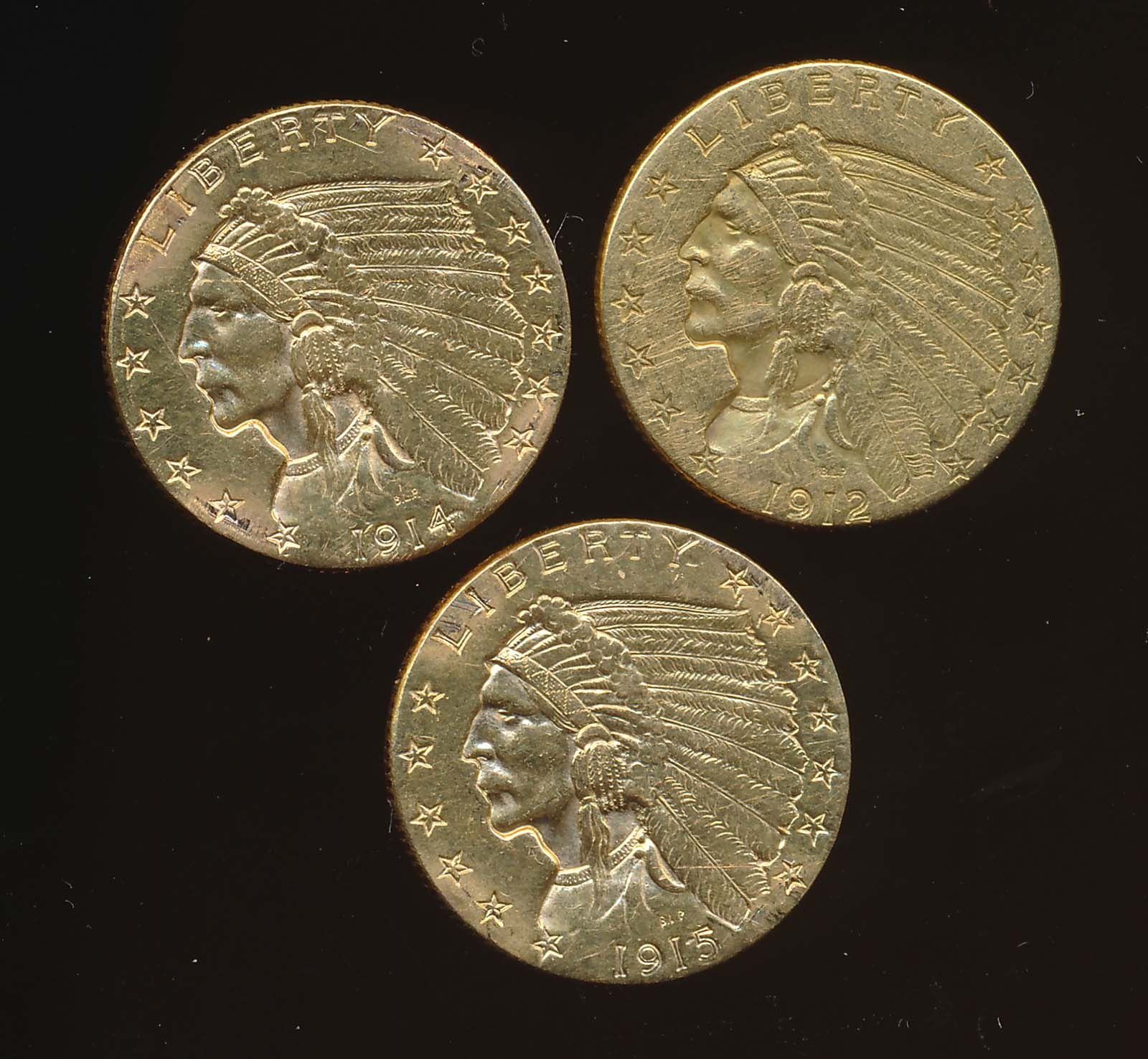 1912 in VF; 1914 and 1915 with polished obverses, probably ex jewellery