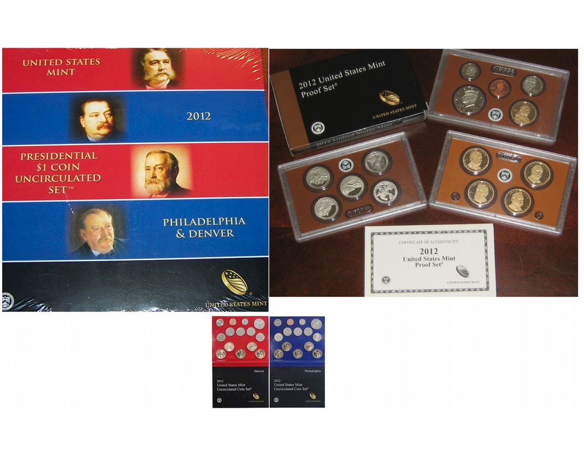 USA Mint Lot; includes 1986 Liberty Half Dollar, 1991, 1993 Proof Sets, 2001 Uncirculated Coin Sets Denver & Philadelphia, 2012 Proof Set, 2012 Philadelphia UNC Set & 2012 Presidential $1 Coin UNC Set.