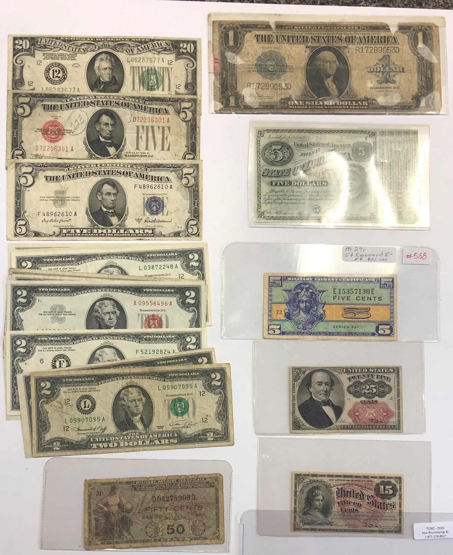 USA; Mixed lot, includes small fractional notes, Military Certificate and more. Lot of 17 notes. Good to Uncirculated.
