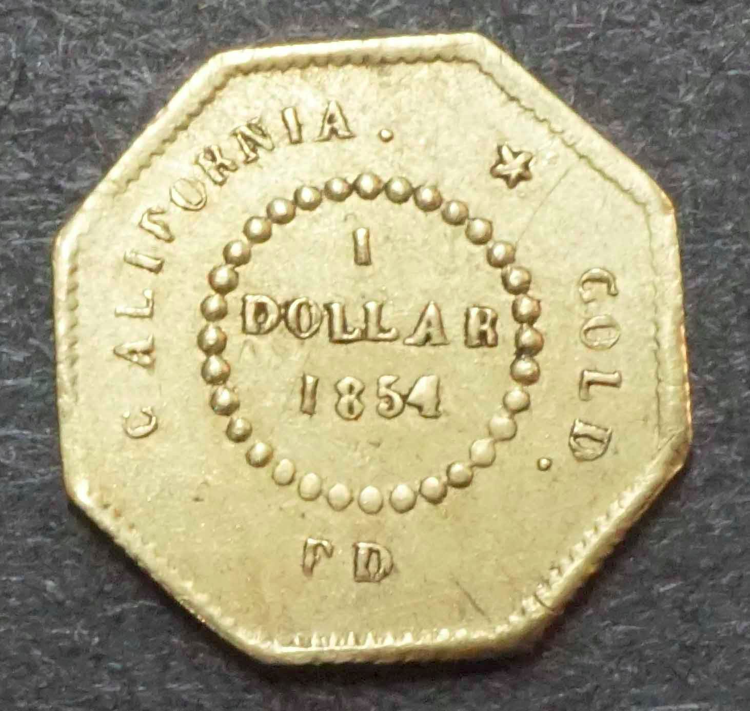 California Gold One Dollar 1854 PD Octagonal