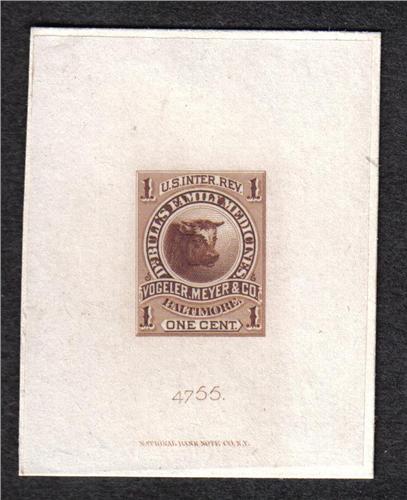 USA RARE MEDICINE DIE ESSAY PROOF PALE BROWN SHADE