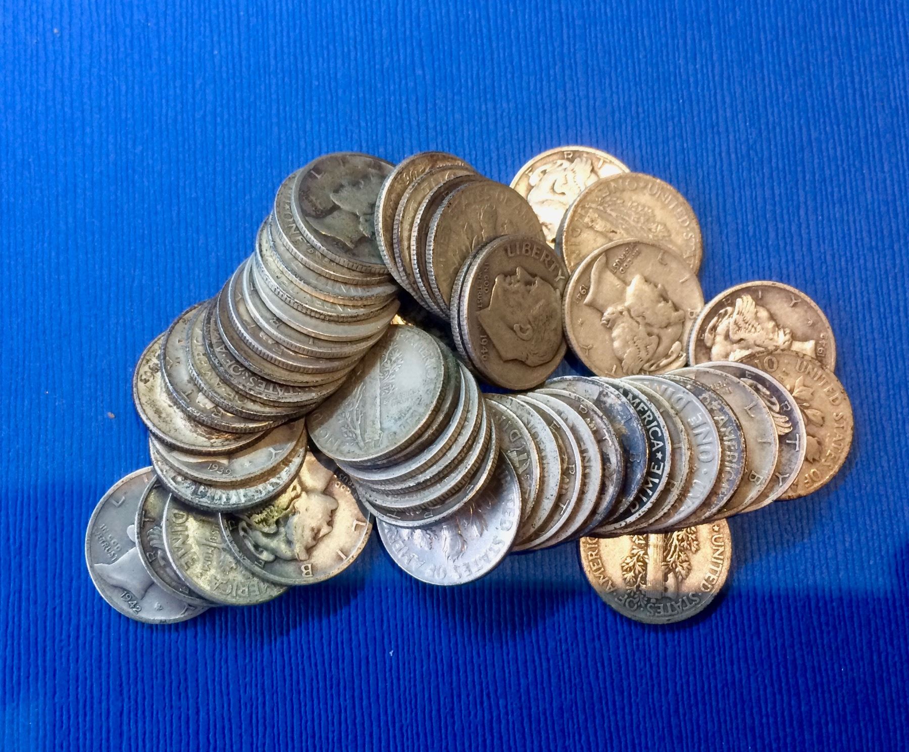 USA Random Silver 10 Cents, Lot of 50 Pieces