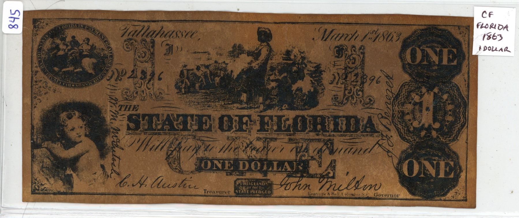 USA. Sate of Florida Counterfeit 1863 $1. Not a real note.