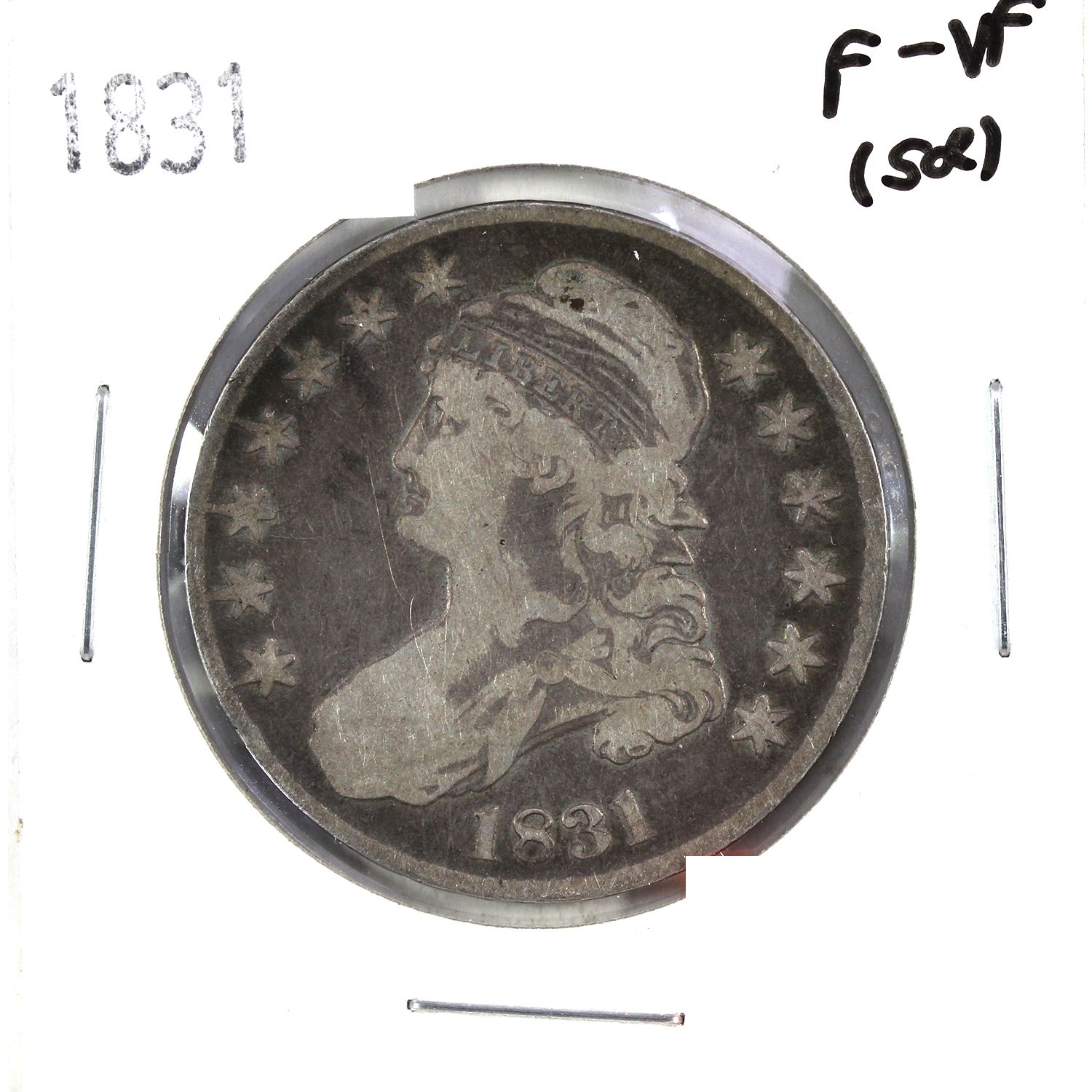 USA Silver 1831 Capped Bust Half Dollar F-VF (Thin Scratch Over Effigy). Coin is .892 Fine and Contains 0.3866oz Pure