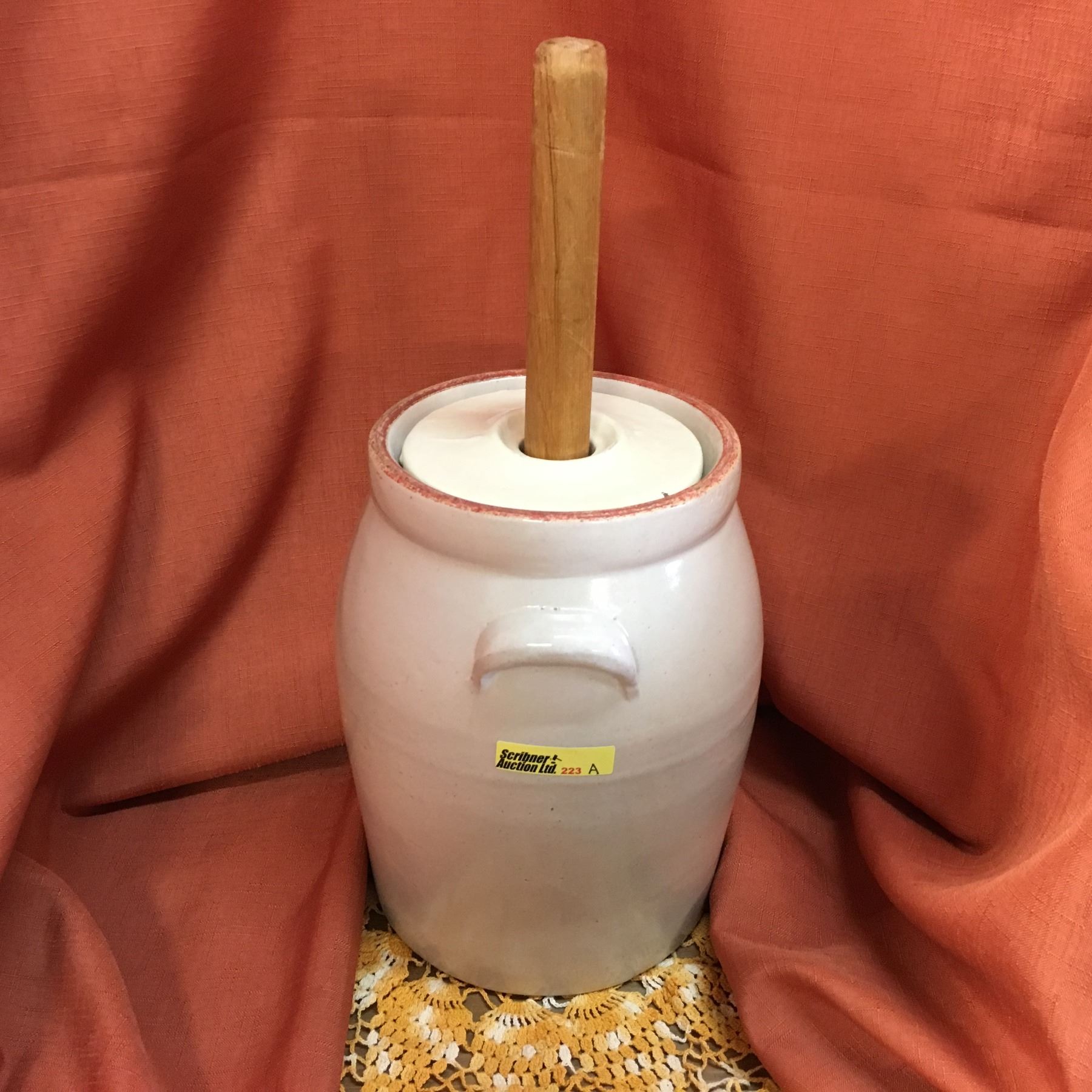 USA  Small Butter Churn Crock (9 H) w/Lid & Paddle  (Salesman Sample?)