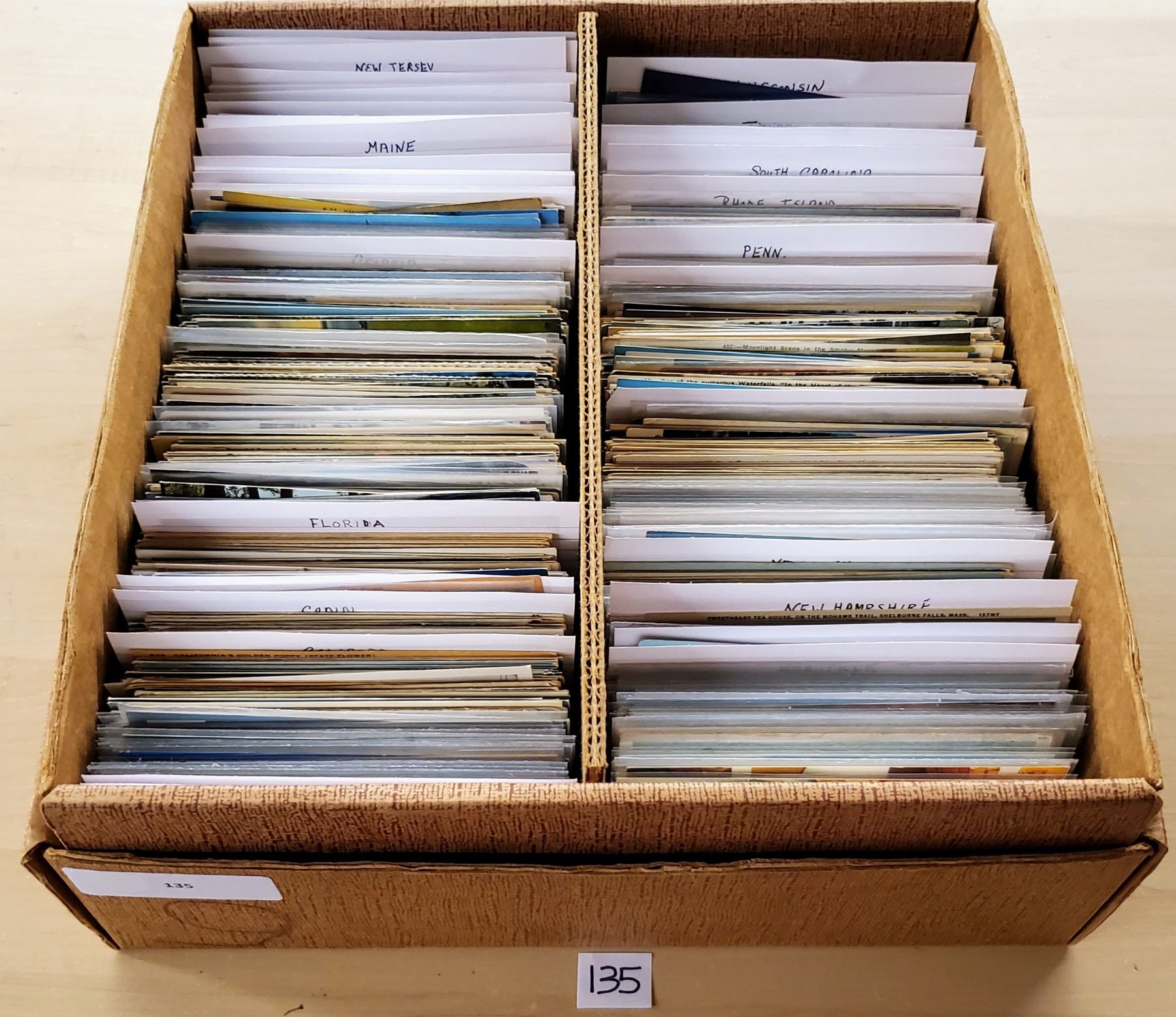 Over 1000 mostly sorted USA postcards. Early to standard size chrome.