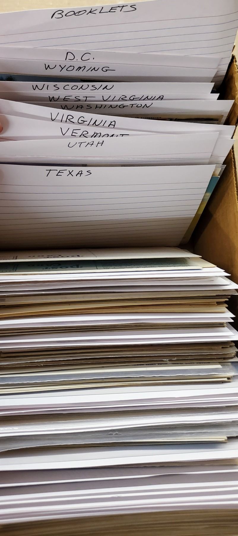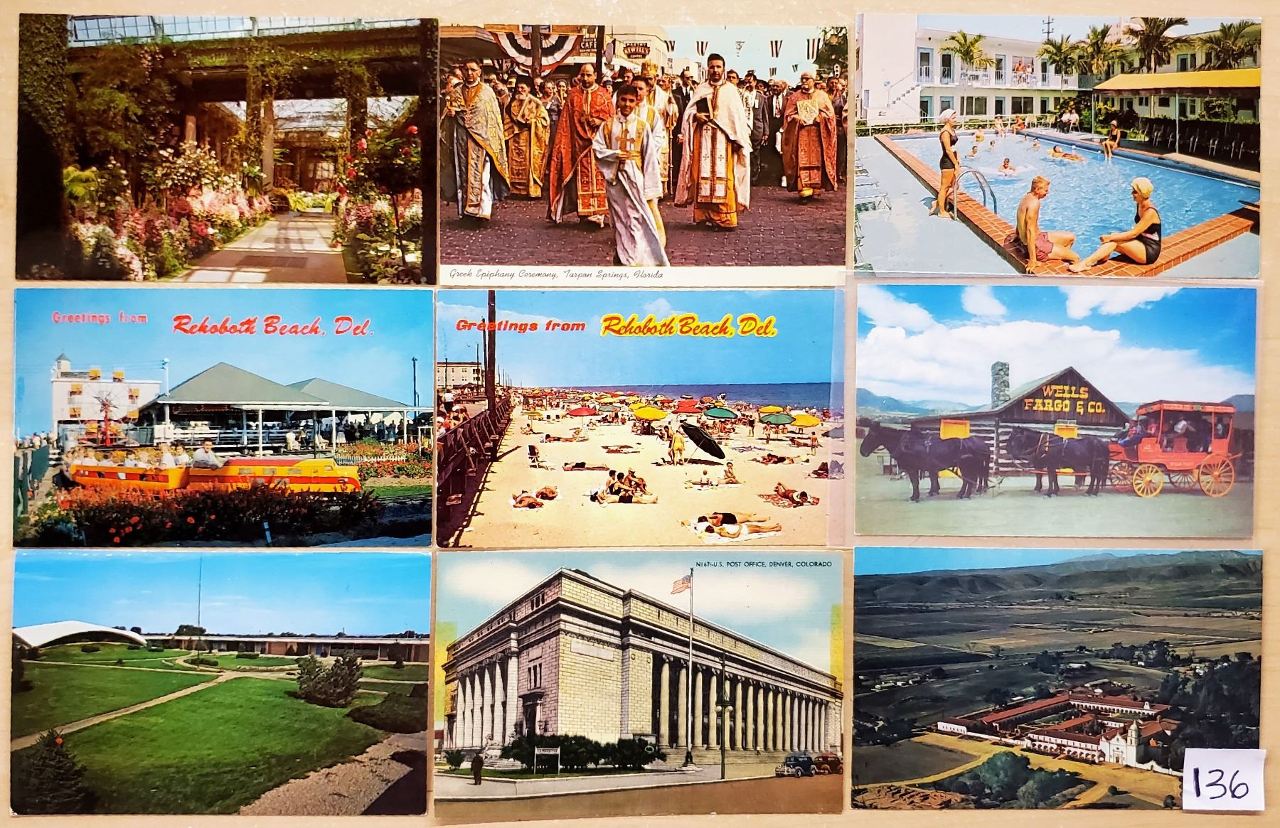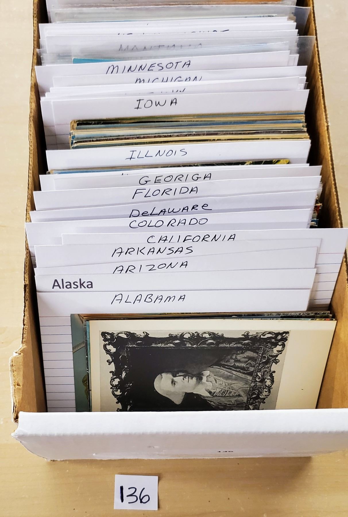 Over 525 mostly sorted USA postcards. Early to standard size chrome.