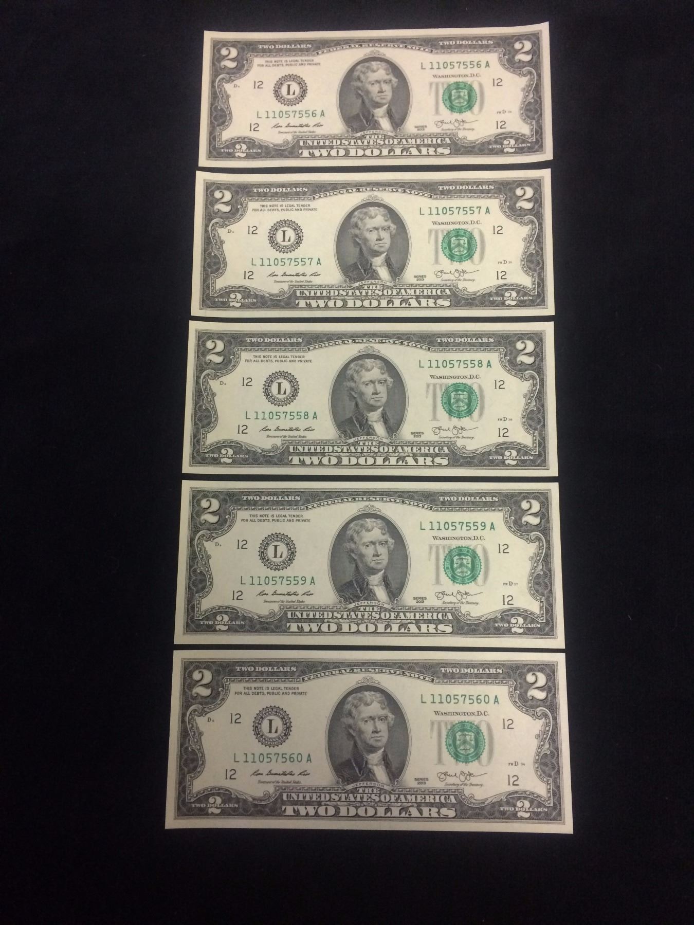 5 TWO DOLLAR BILLS
