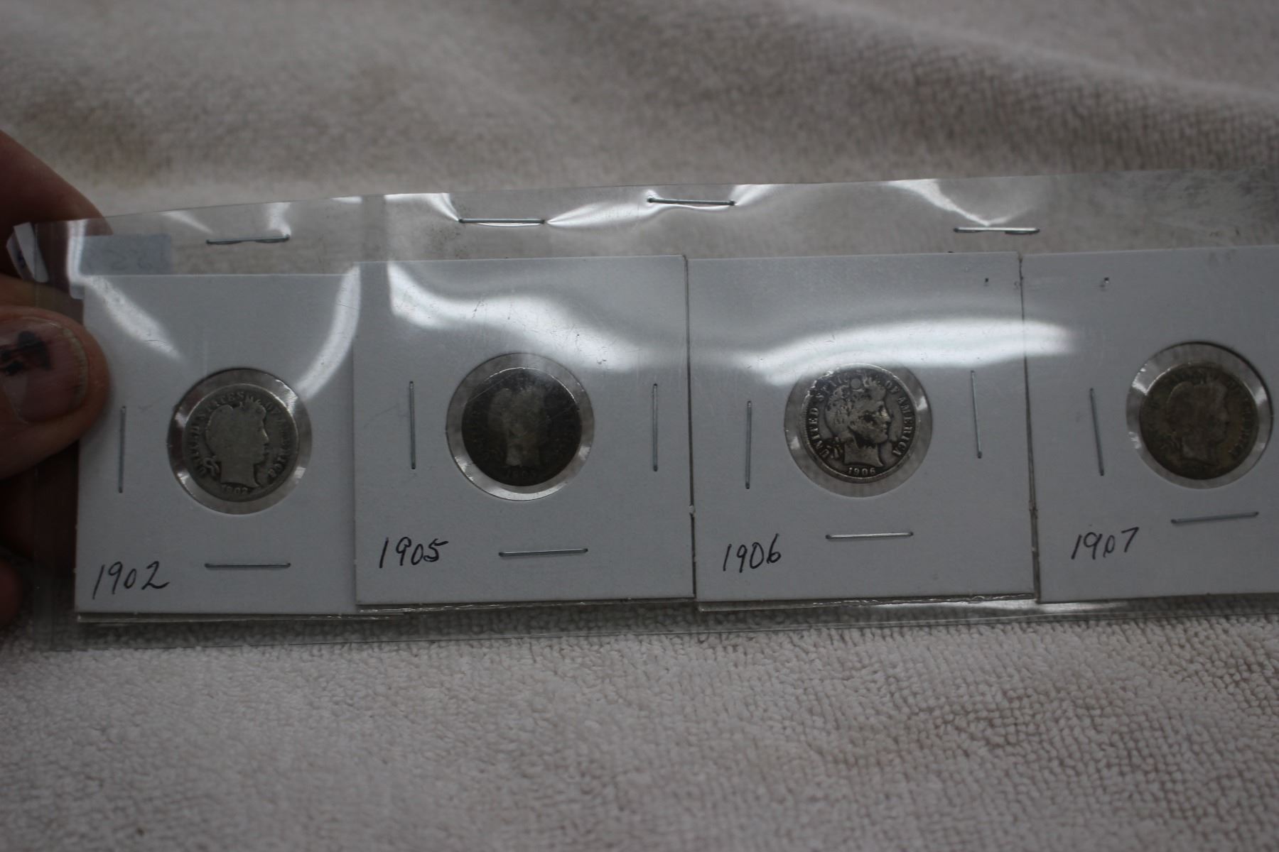 USA Ten Cent Coins (4) 1902, 1905, 1906 & 1907 - One is Holed