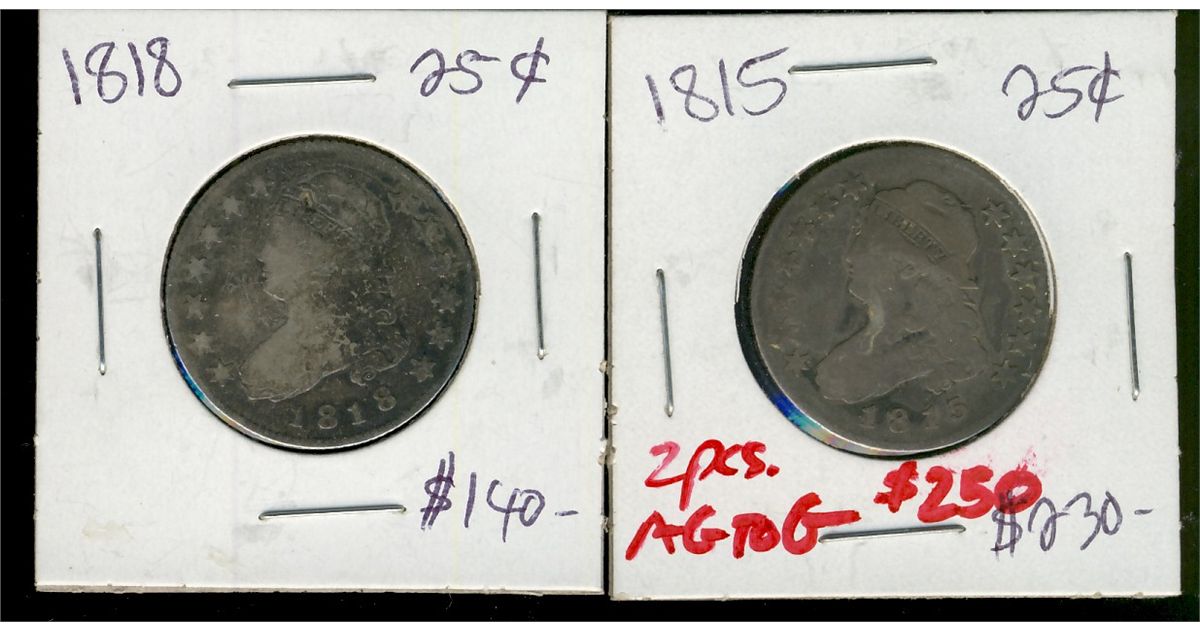 USA Twenty-Five Cent Lot; includes 1815 & 1818. Lot of 2 coins AG to Good.