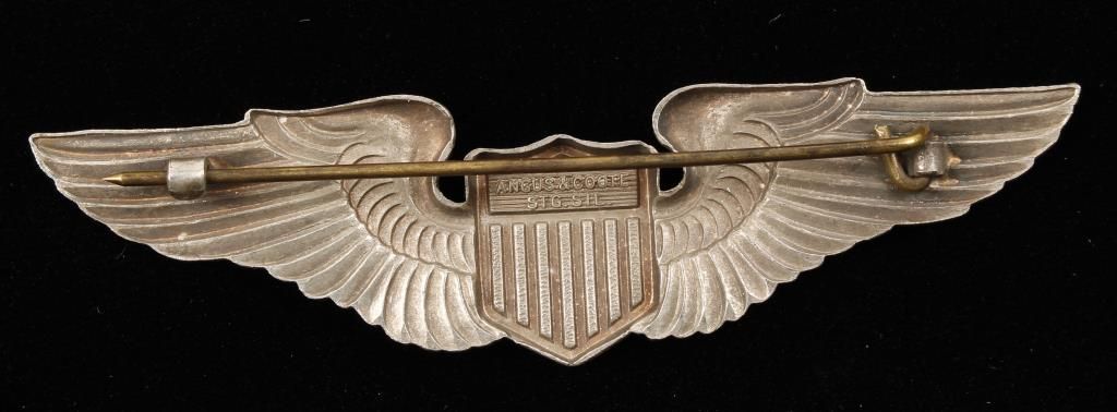 Wing. The photo folder measures 8" tall by 9 3/16" wide showing the pilot and his wife. The pilot wing measures 7/8" tall by 3 1/8" wide. The reverse is maker marked 'Angus & Coote Stg Sil'. Has an English style thin horizontal pin back. Offered "as is", we don't guarantee the authenticity of this item, please do your research. All sales are final.