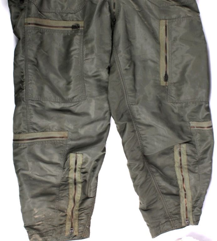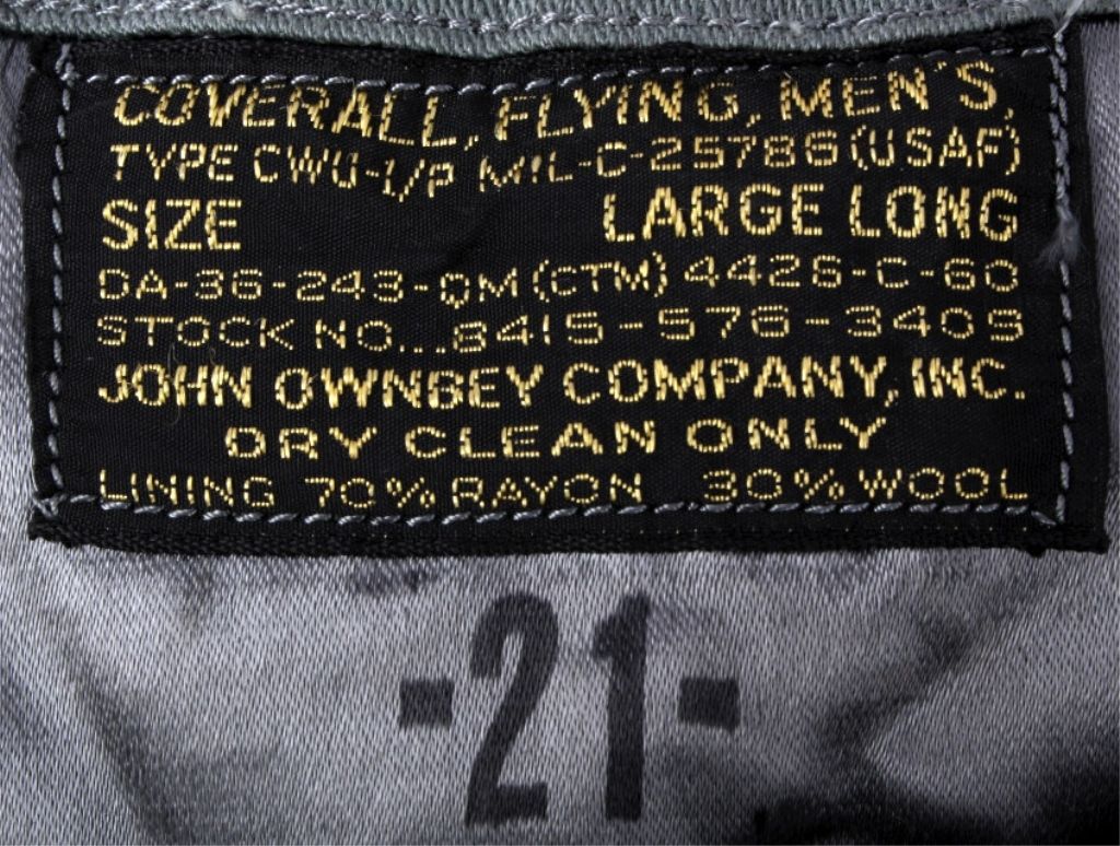 This lot features a USAF extreme cold weather flight suit. The tag reads "Type CWU-1/P MIL-C-215786(USAF)". It is a size "Large Long". This flight suit is in like new condition.