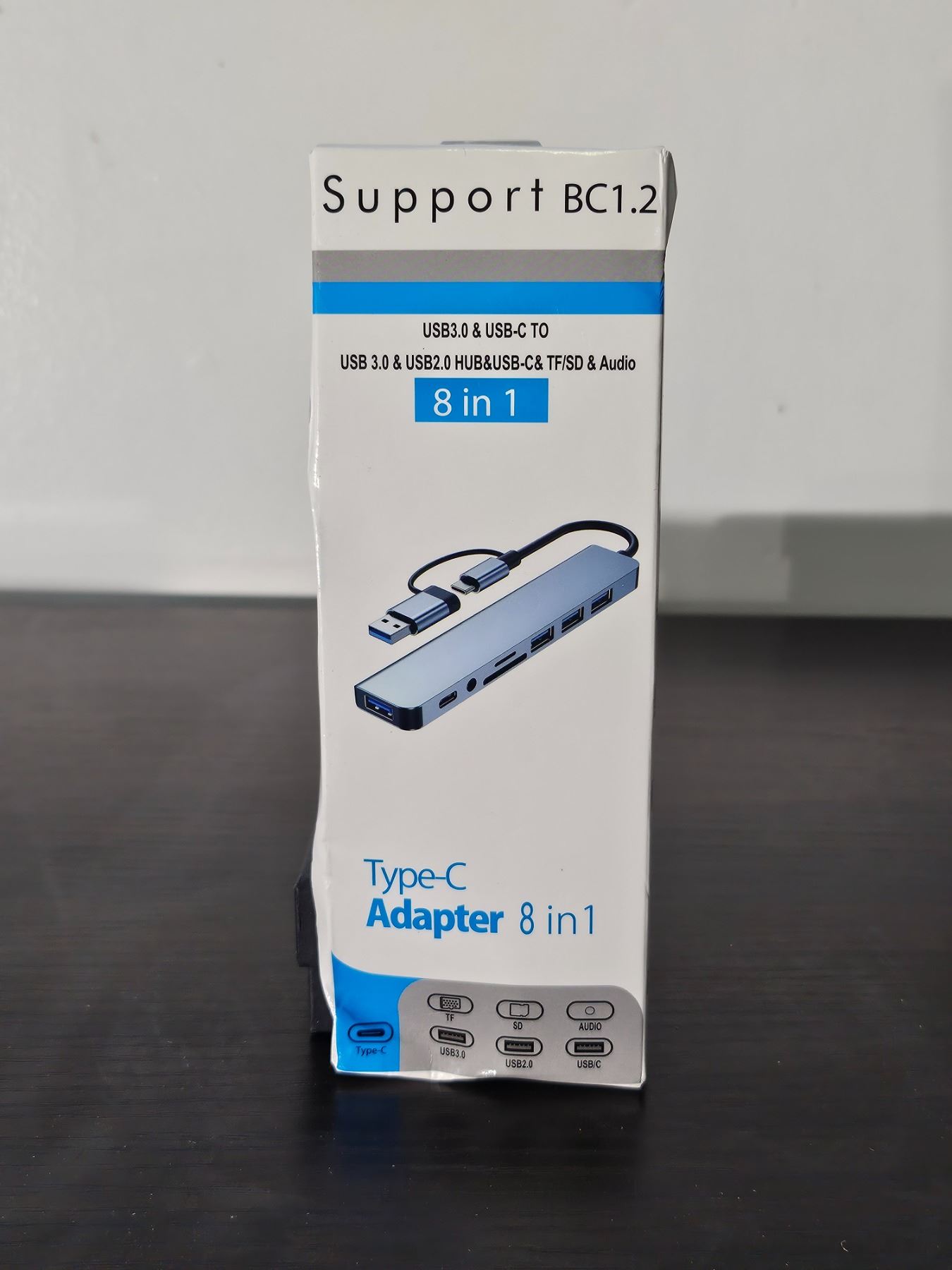 Type C USB adapter, 8 in 1. USB3 & Type C to TF, SD, audio, USB3, USB2, USB/C