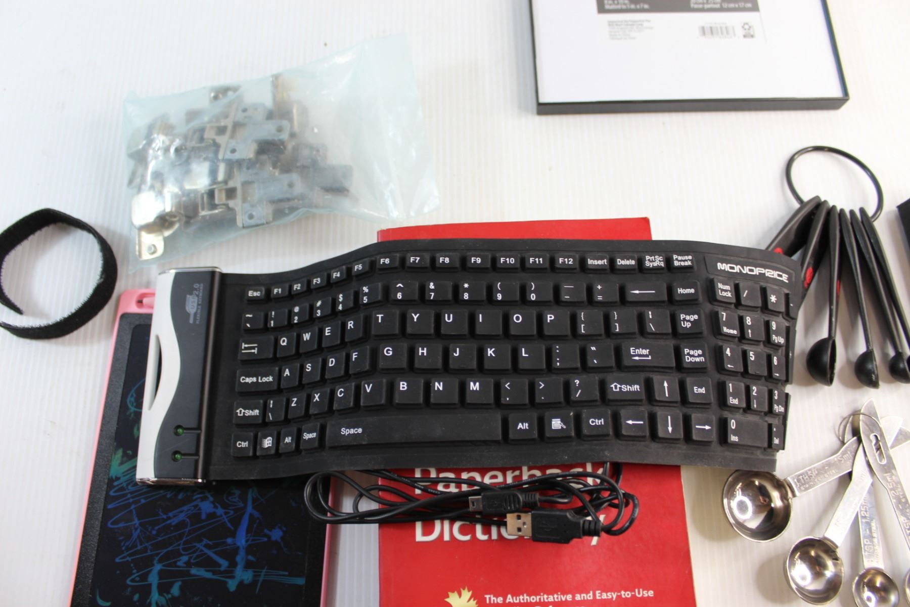 USB Flexible Keyboard, (2) Sets of Measuring Spoons, Photo Frame 10'' x 8'' and Assorted Items