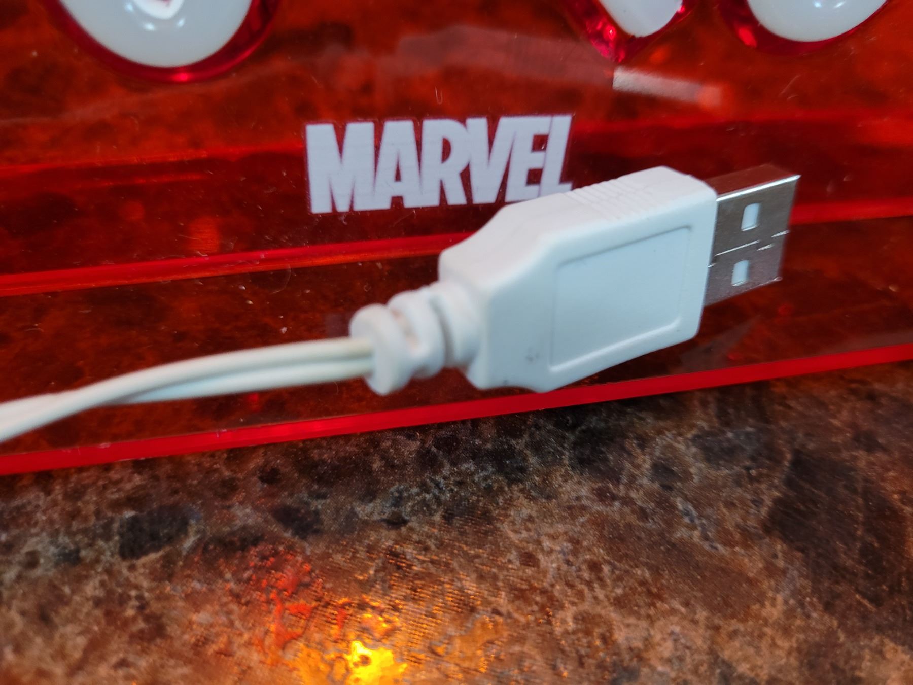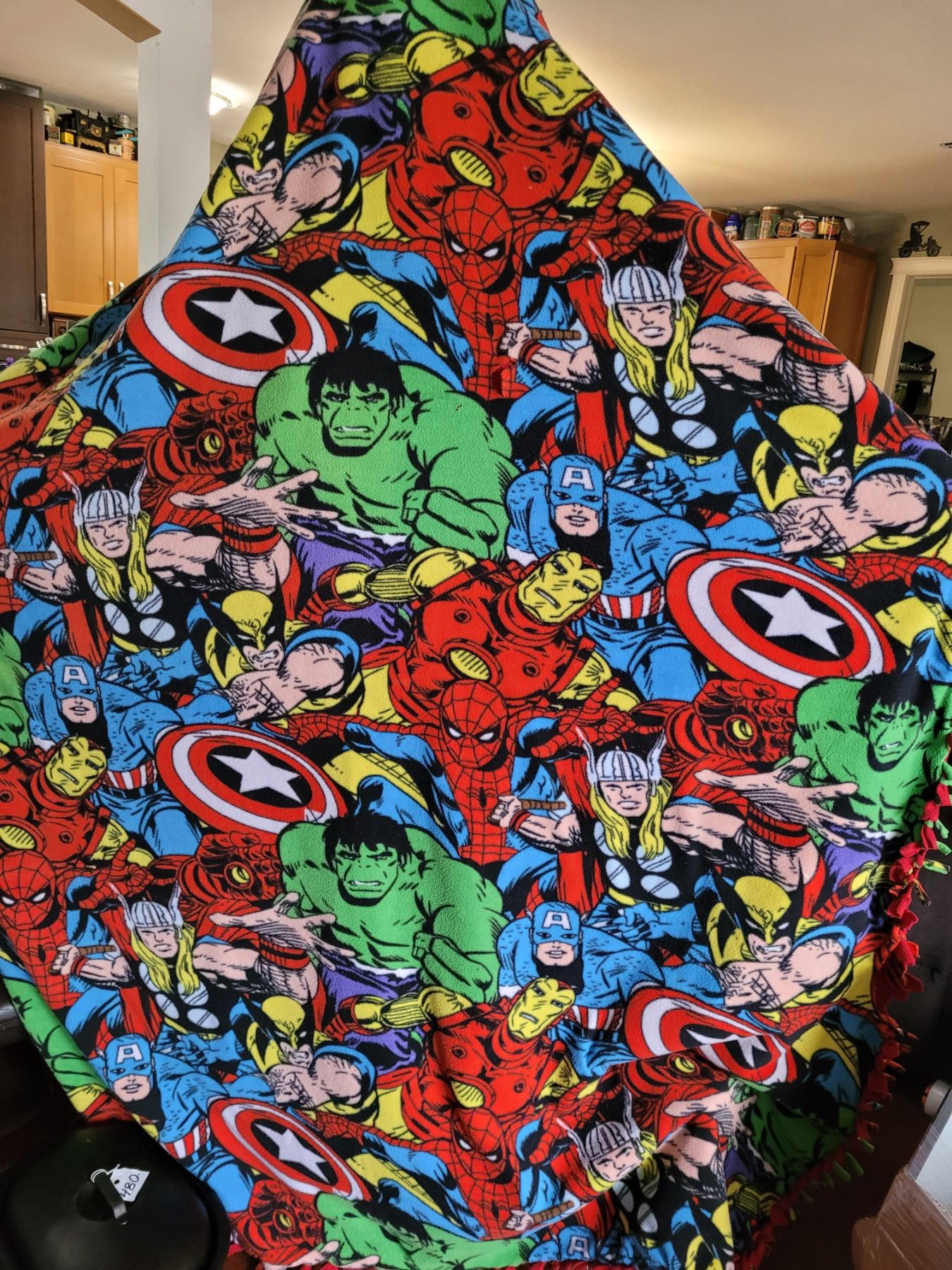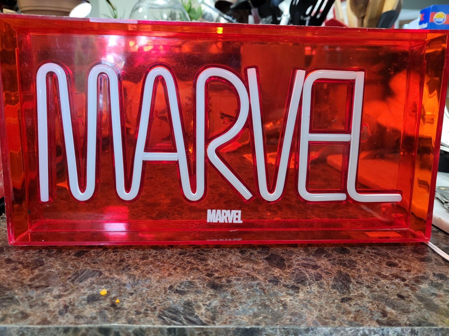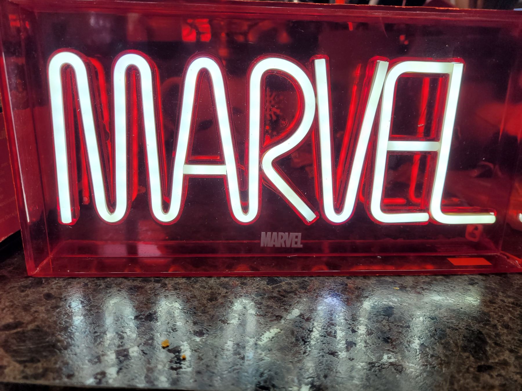 USB light up Marvel sign & fleece Marvel action figure blanket.