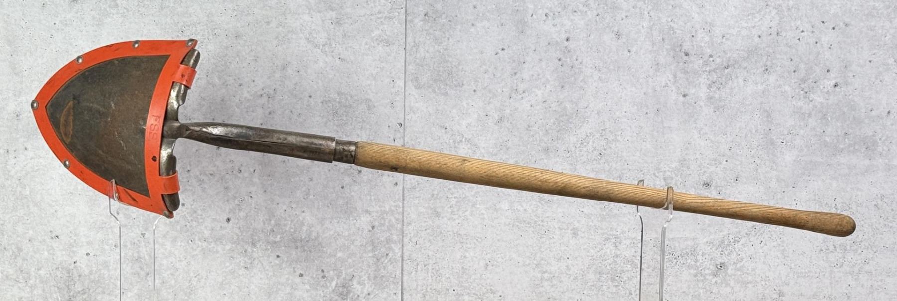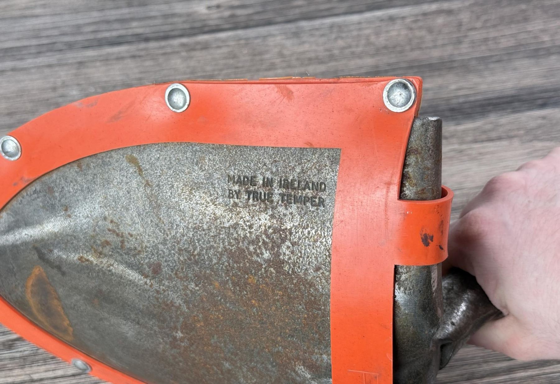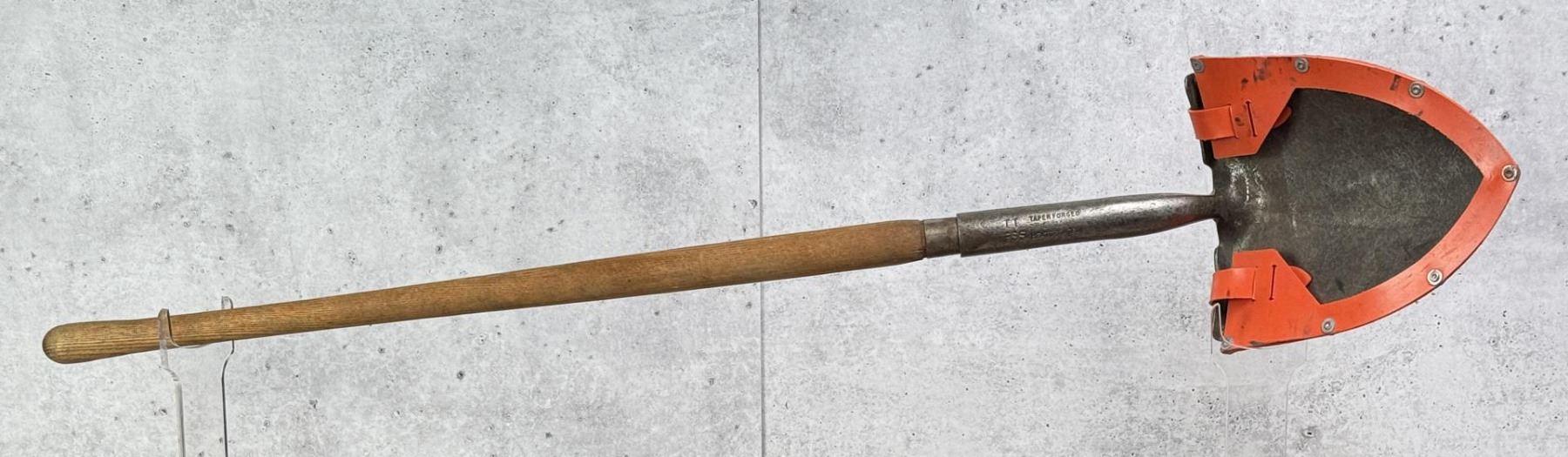 Lot includes shovel, handle, and safety cover. 48" long overall.