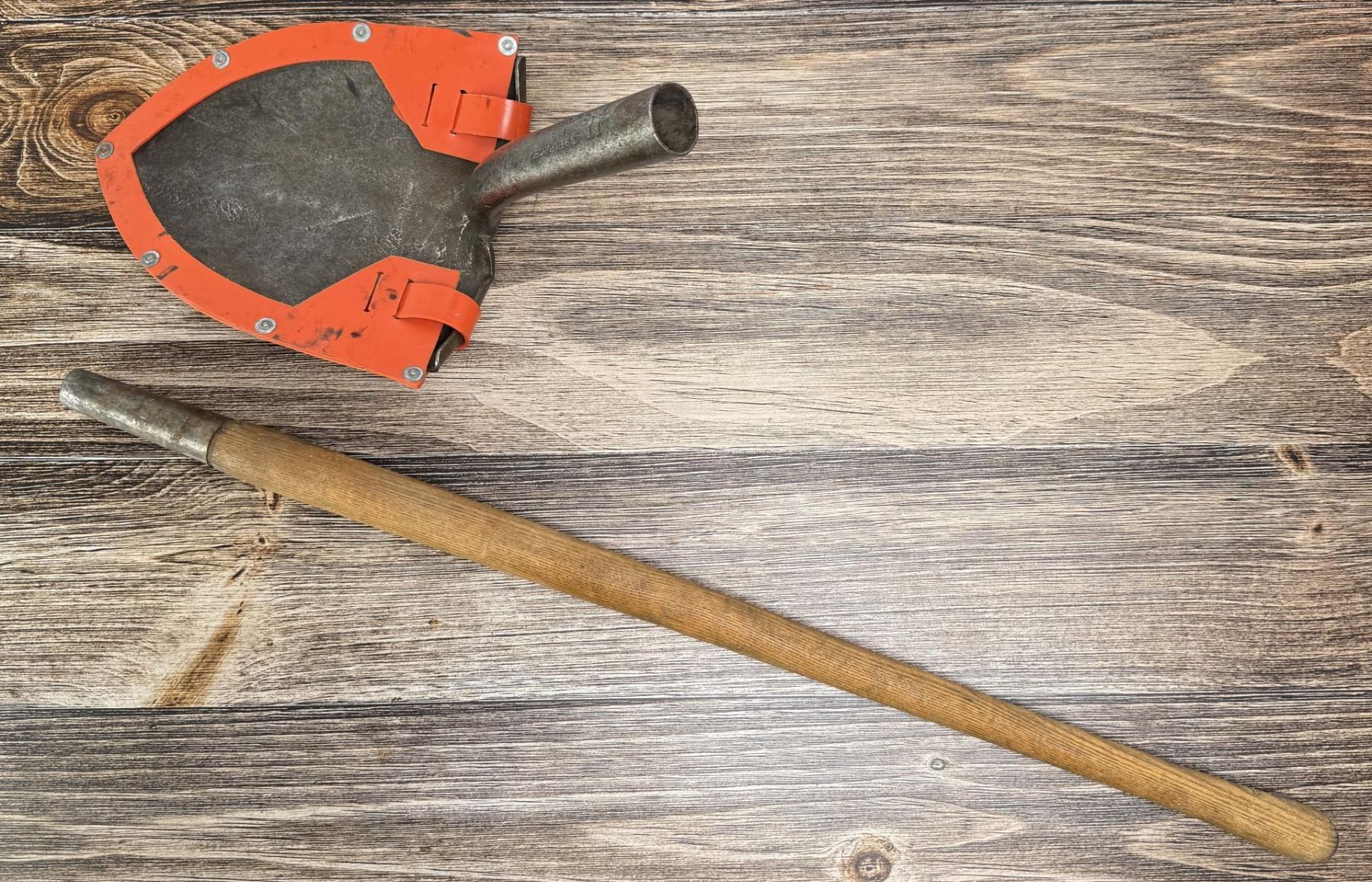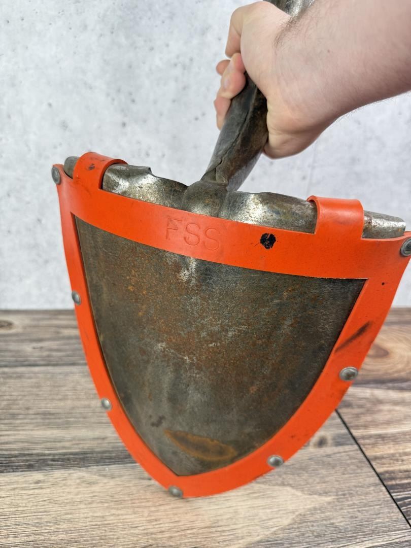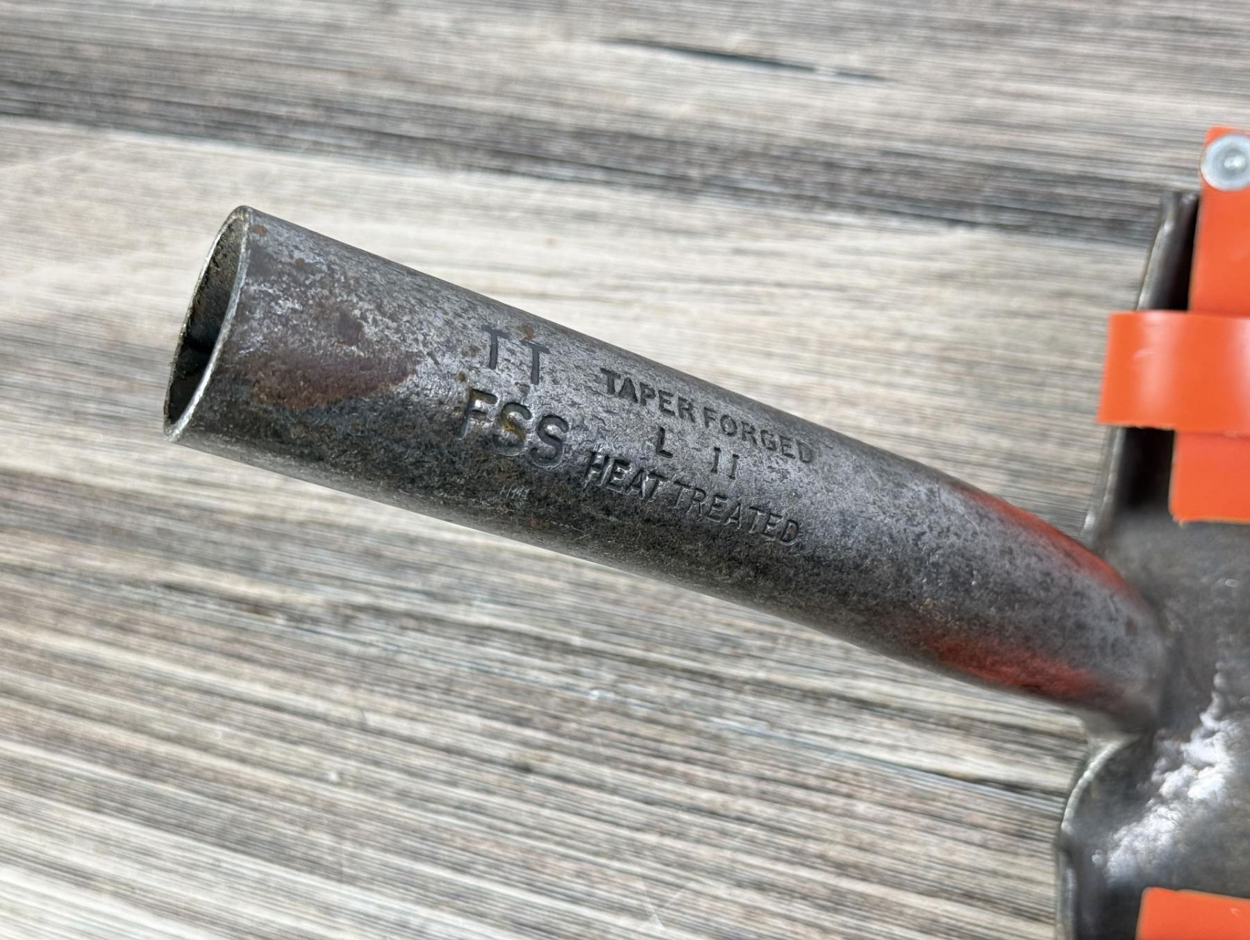 Lot includes shovel, handle, and safety cover. 48" long overall.