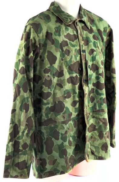 WW2 US Marine Corps unissued reversible camouflage tunic double stiched. It has the 2 side entry pockets in front, old US Marine Corps buttons. Tunic is size 36. Overall in very good condition.