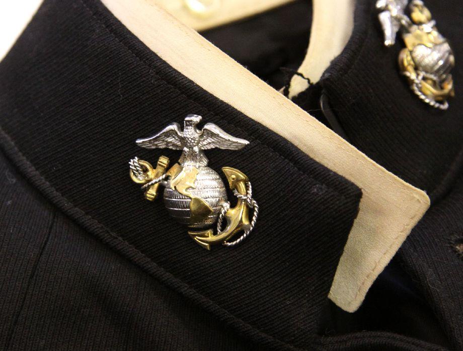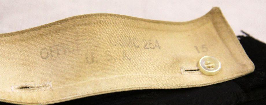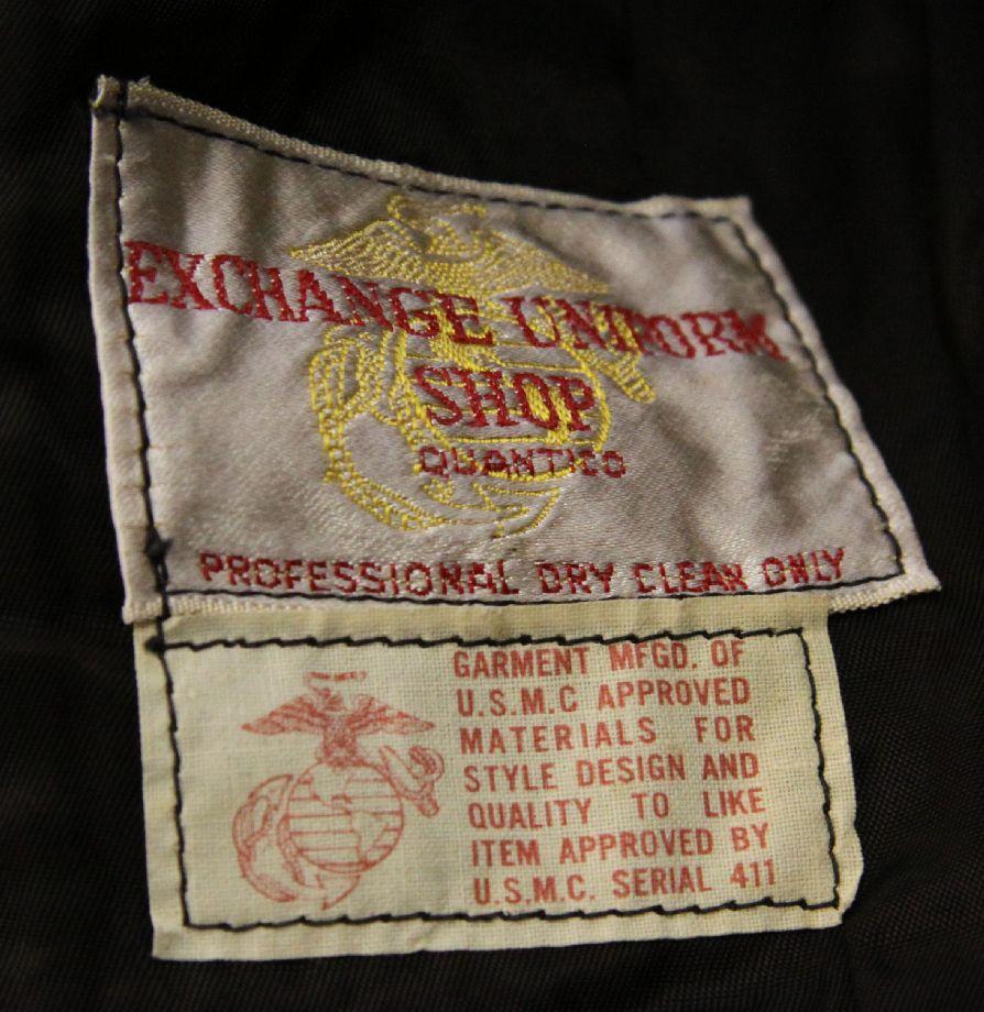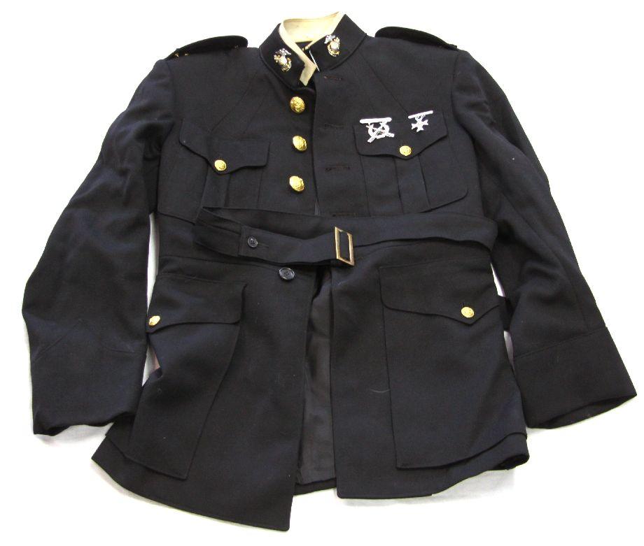 A private purchase Marine Corp officers dress tunic , small size about a 38, nice condition free of mothing, USMC globes are sterling balance of insignia are base metal.