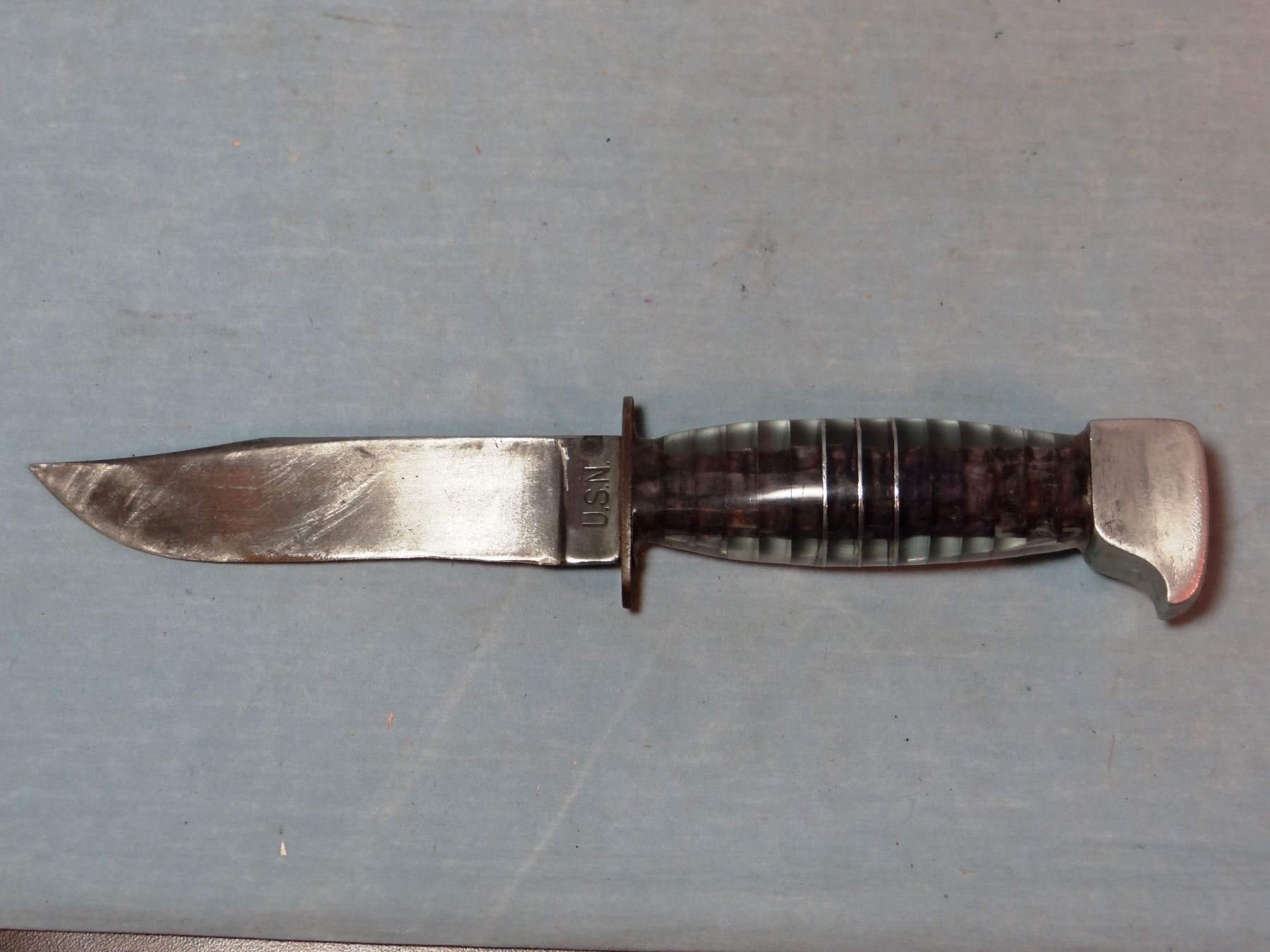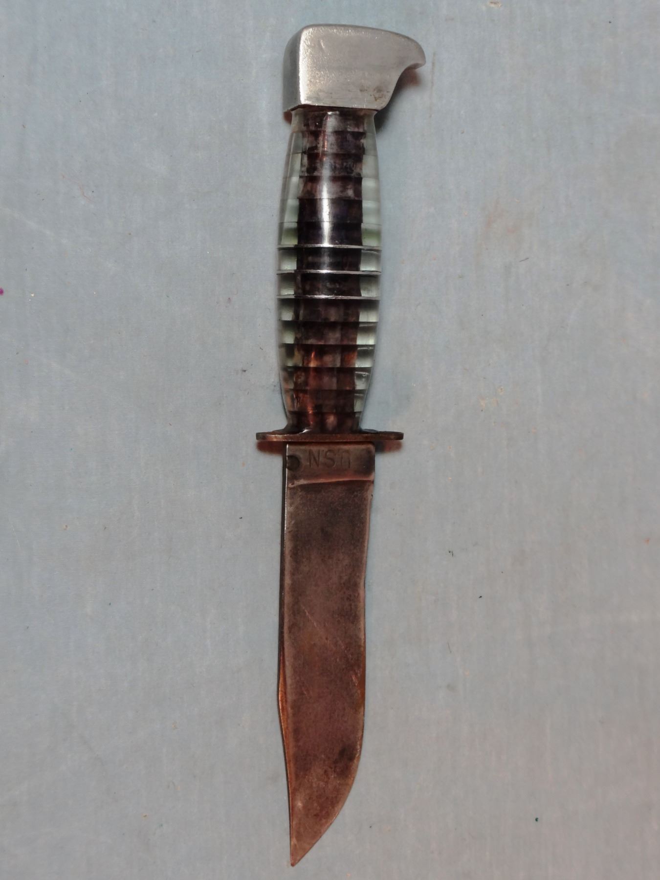 USN Robeson ShurEdge #20 knife, marked; & military gun cleaning kit in tin case