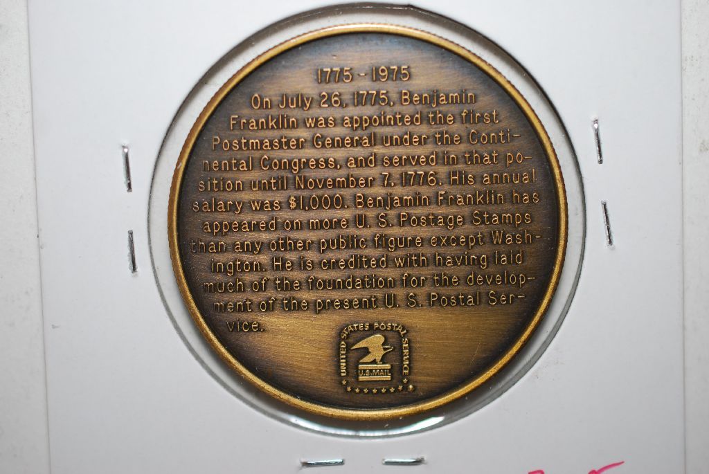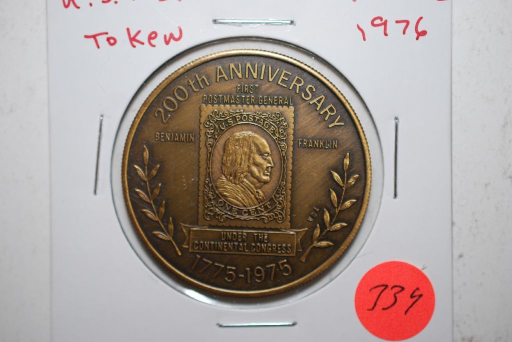 USPS Token Issued 1976, "200th Anniversary First Postmaster General Benjamin Franklin Under the Continental Congress 1775-1975"; EST. $3-5