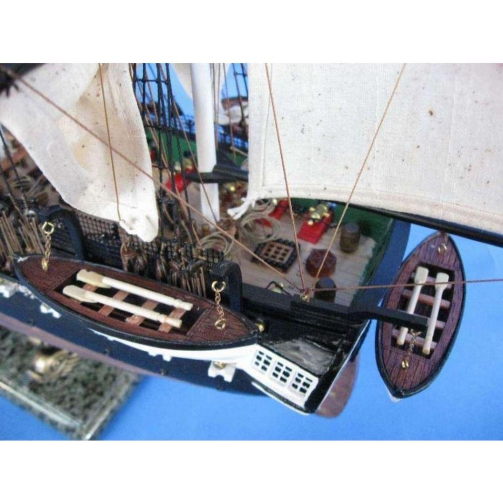 USS Constitution Limited Tall Model Ship 30" SOLD FULLY ASSEMBLED Ready for Immediate Display - Not a Model Ship kit This museum-quality Limited Edition scale replica tall ships model of “Old Ironsides†is bedecked with historically accurate features and built with the finest craftsmanship and attention to detail. As the US Navy’s oldest and most famous fighting tall ship, the USS Constitution holds a proud place in American history. Now these Limited Edition tall ship models can similarly inhabit a proud position, displaying their historical patriotism and indomitable spirit in your office, home or meeting room. 30" Long x 9" Wide x 23" High (1:82 scale) Built from scratch by master artisans Museum Quality features not available in other tall ship models under $3,000 or any kit Accurate beakhead design and scrollwork Increased detail of deck features, cannon carriages, deckwall painting and other features Handcrafted rosewood eagle on the stern Individual wooden planks used in hull construction Gun ports actually cut into the hull High quality woods include cherry, birch, maple and rosewood 300-400% more rigging than 20†model tall ships Meticulous painting accurately matches the actual USS Constitution Amazing Details, including: Planked deck with nail holes Authentic scale lifeboats Rudder chains, cannonball racks U.S. shield on the bow Solid brass cannons and metal anchors Additional deck details such as cannon balls, barrels, etc. 23 masterfully stitched, heavy canvas sails hold shape and do not wrinkle Taut rigging with varied thread gauge and color Limited production run only 100 of these tall ship models Certificate of Authenticity individually numbered and signed by HMS Founder and Master Builder Richard Norris Wooden display base features four arched dolphins Pictured with marble base (available for purchase) Extensive research of original plans, historical drawings and paintings as well as actual photographs ensures the highest possible accuracy NOTE:  The copper on the hull has been replaced with individual wooden planks.  In certain climates across the world the copper plating would be problematic.Â