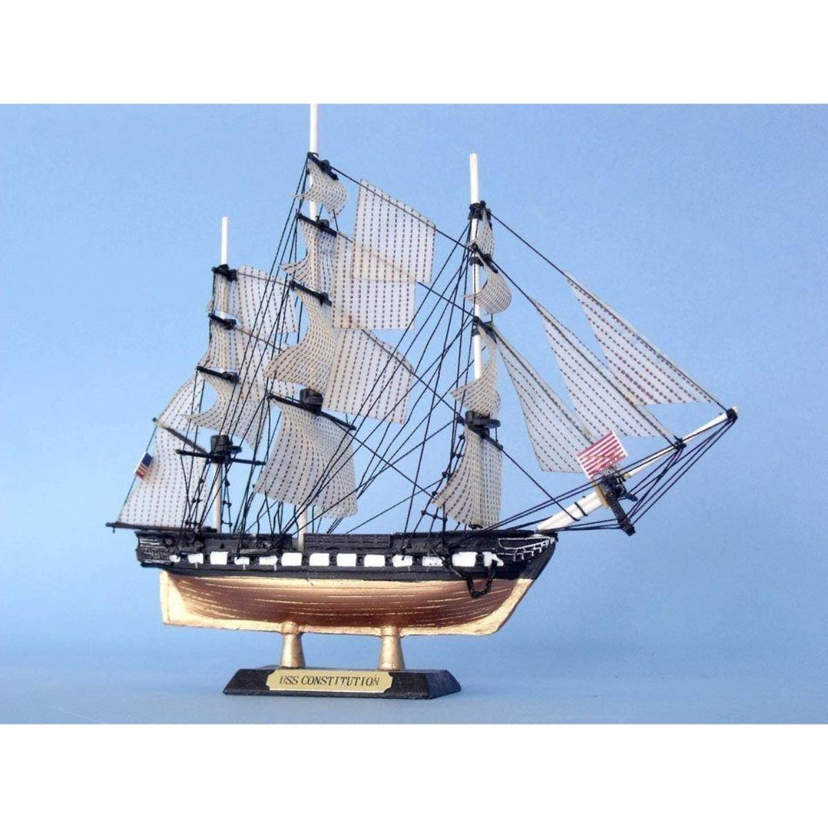 USS Constitution Limited Tall Model Ship 7"  Launched in 1797, the USS Constitution is the world's oldest commissioned sailing vessel. Recreated here in stunning detail, this famed ship model makes an excellent gift to any child or nautical enthusiast. Both historically intriguing and handsomely crafted, enjoy the warm nautical flare this model brings to any room of the home or office.  Handcrafted in a delightful size, this amazingly detailed model fits perfect atop any desk or shelf. Enjoy the fine craftsmanship and rich history of this legendary USS Constitution tall ship, and feel the might of this terrifying warship!  NOTE: This item is small, only 7". Please measure this size yourself to ensure it is appropriate for your intended purchase. Amazingly Detailed features include: Wooden masts, spars, base and deck Thread rigging for all sails Rope ladders ascending both masts Hand-painted with many details Arrives fully assembled with all sails mounted and rigging taut Meticulously painted by hand  Â