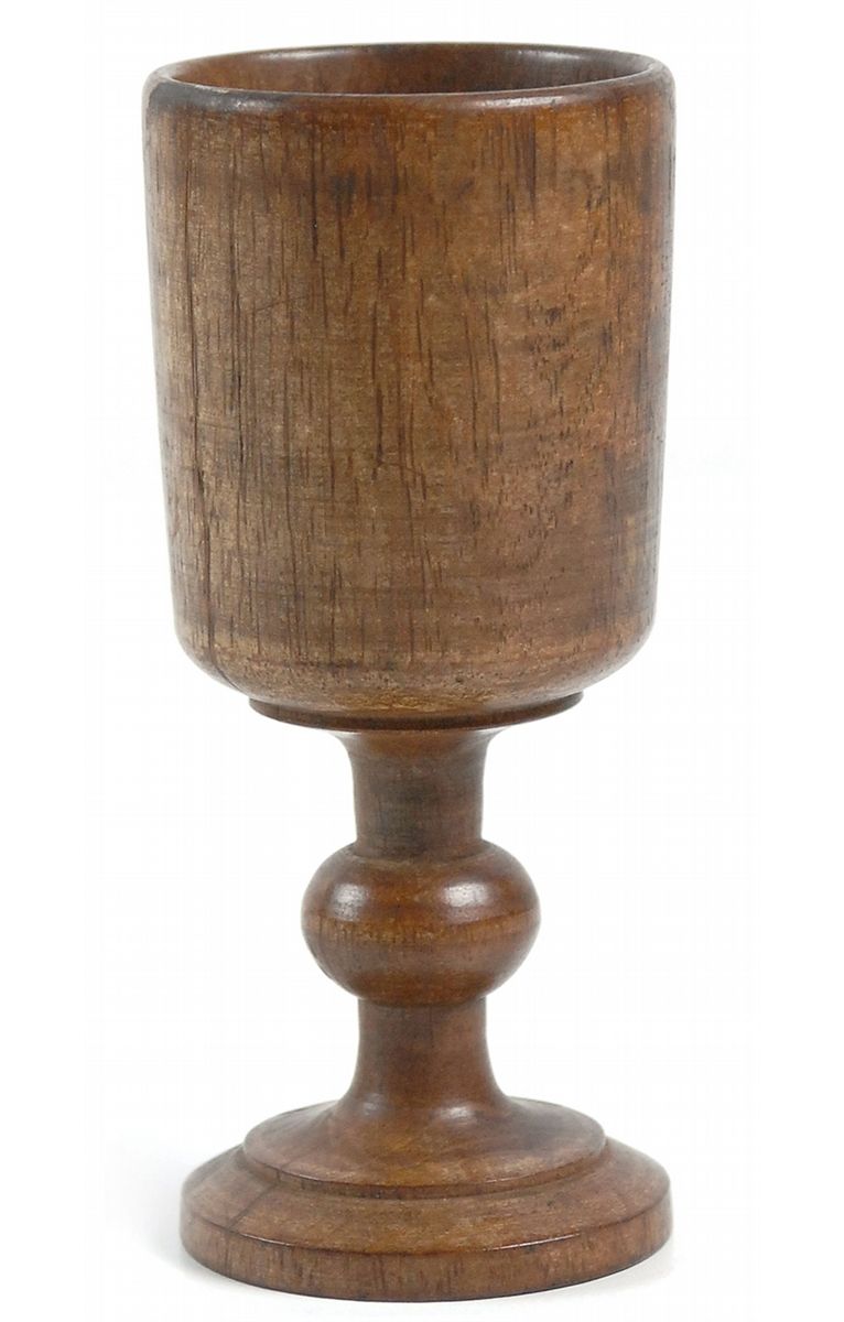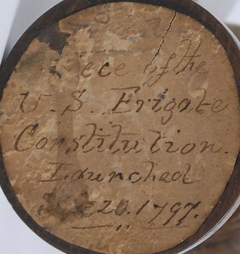 Turned wooden chalice made from a piece of the USS Constitution. Chalice measures 4.5? high with a 1.75? diameter at the base. This piece originates from the John S. Reigart Collection of Historical American Relics, and bears a handwritten label on the bottom of the base by Reigart which reads, “[P]iece of the U.S. Frigate Constitution, Launched S. 20, 1797.” In fine condition. During the mid-and-late 19th century Reigart assembled a comprehensive collection of relics from every period of America’s history. He was clearly aware of the importance of provenance of all the pieces in his collection and included detailed documentation in the form of period ink script notes, most of which he attached to the actual artifacts.