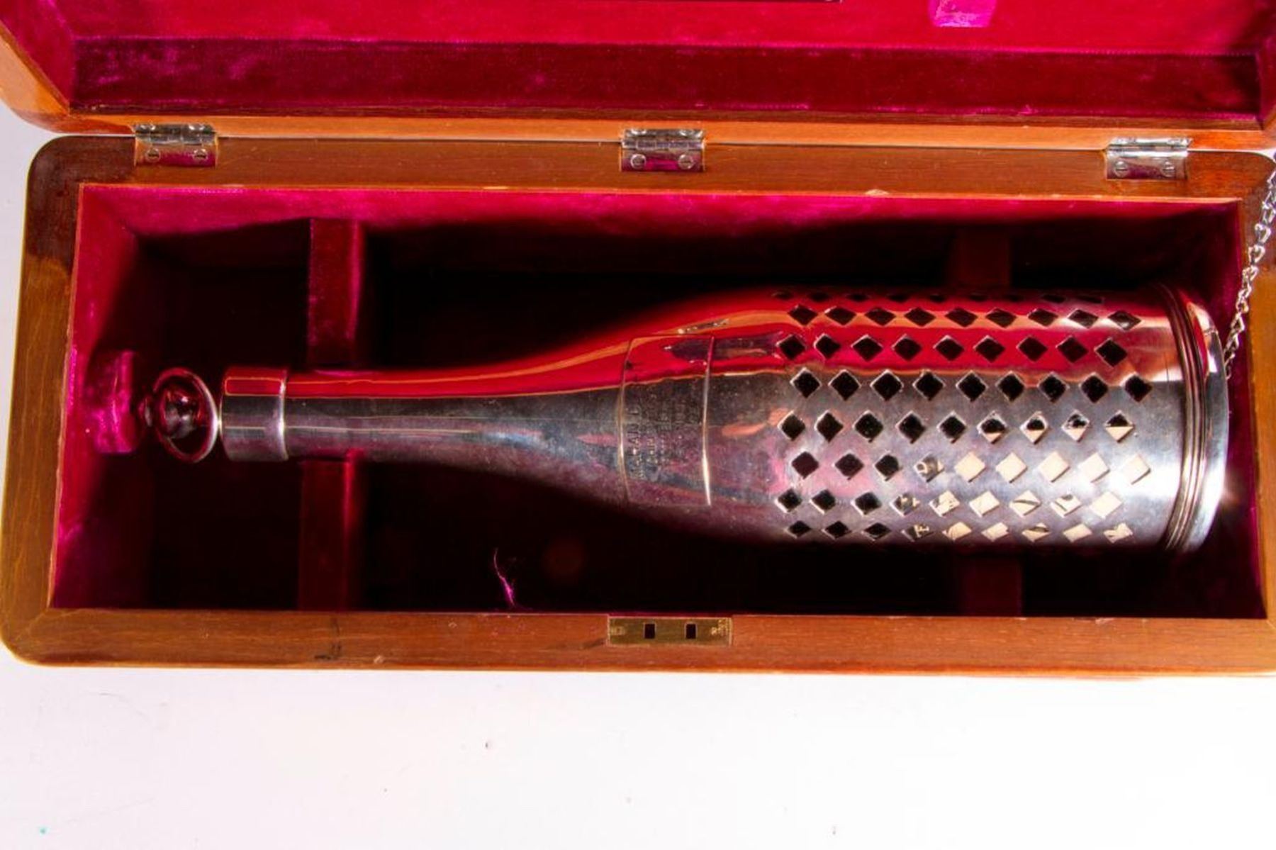 Champagne Bottle used at the USS MAHAN (DLG-11) ship's launch with presentation box.