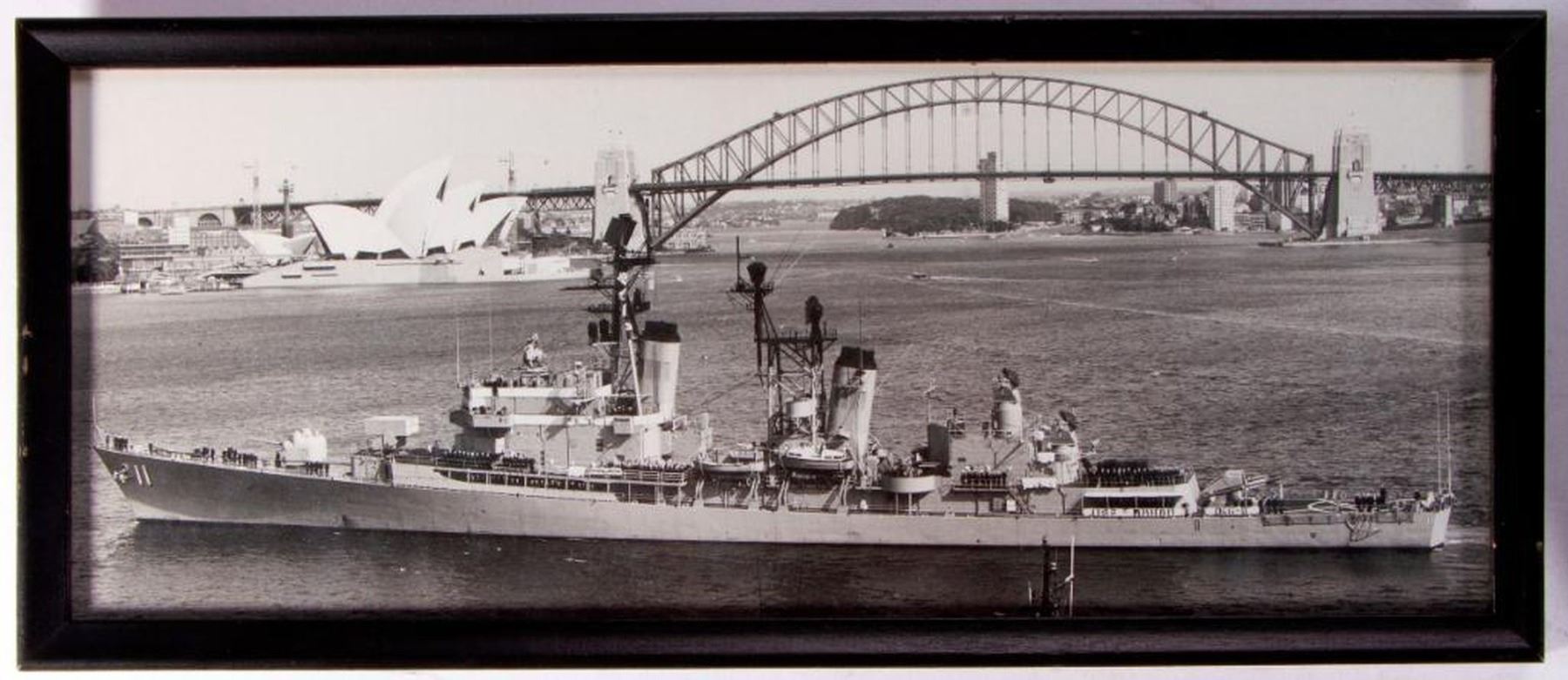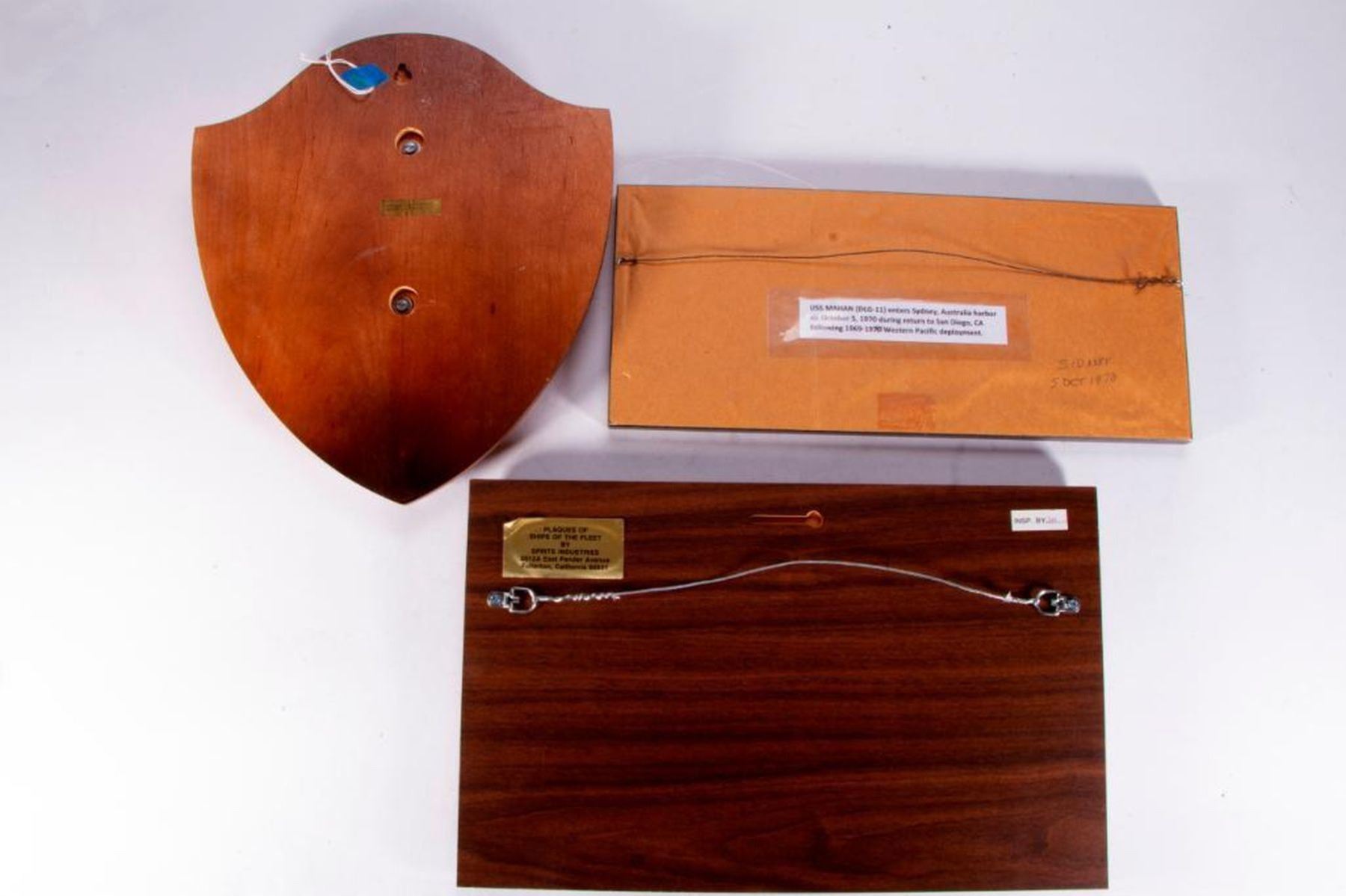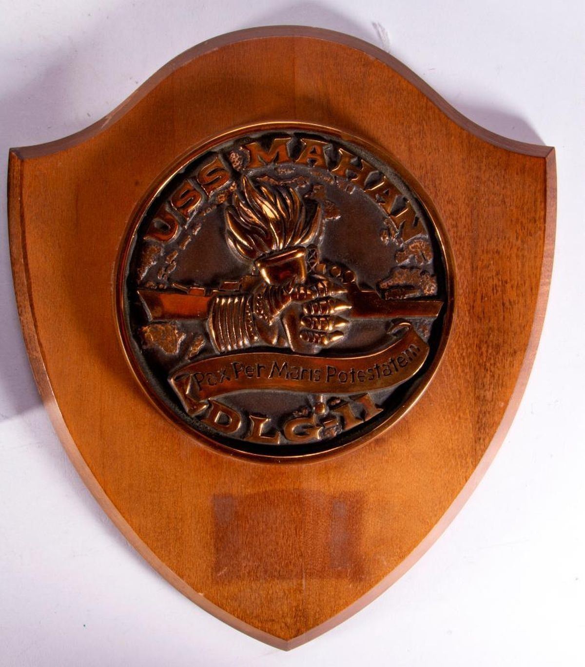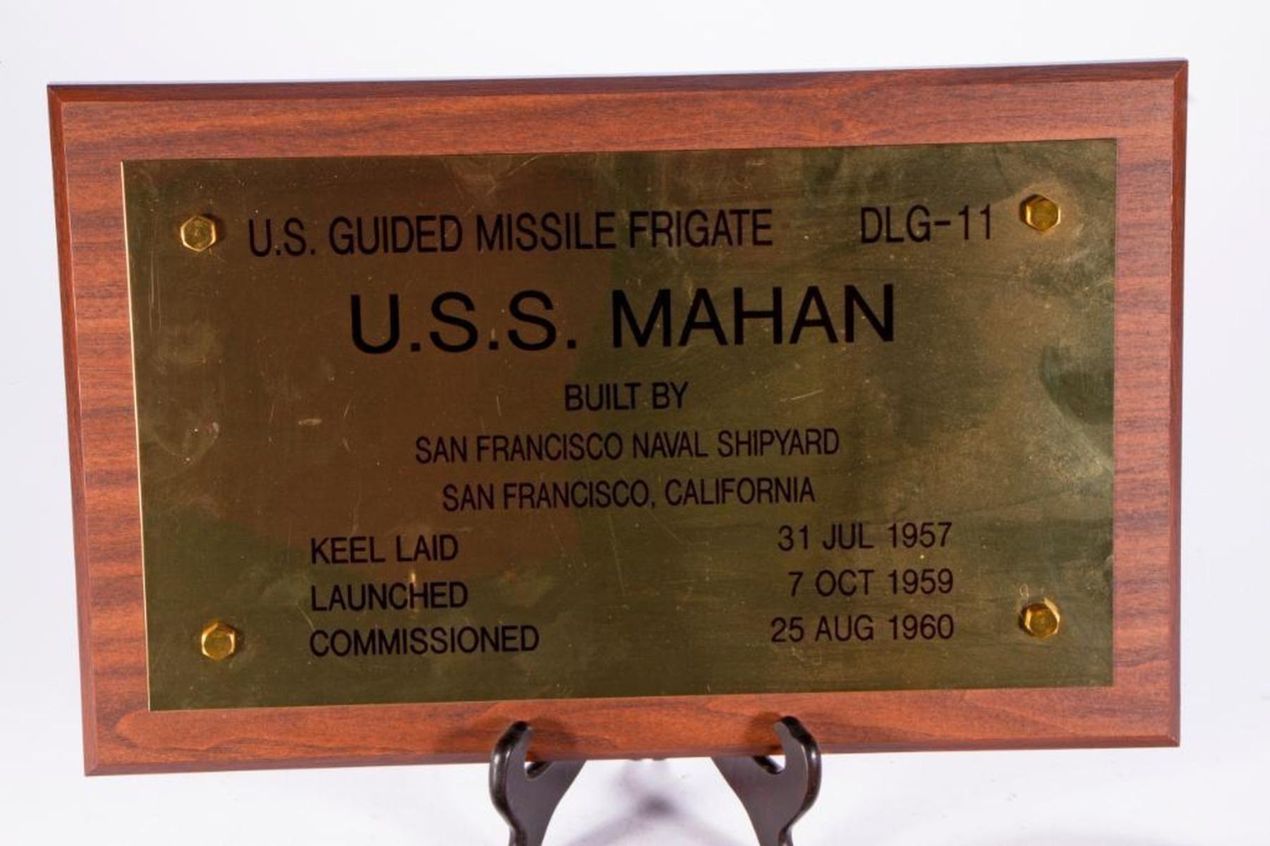 USS MAHAN (DLG-11) Bronze plaque on would shield, ships motto: "Strength Through Sea Power". USS MAHAN (DLG-11) Brass specification plaque. USS MAHAN (DLG-11) Friend photograph.