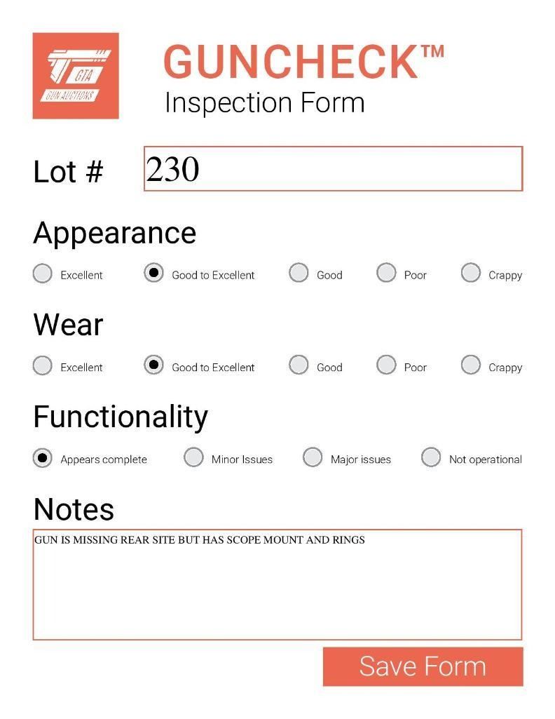 GTA Guns and Gear Auctions Inc. does not guarantee nor make warranties on any lot sold. Ratings in the catalog are opinions. We acknowledge that errors may occur although we endeavor to give you accurate information in what is written. We strongly recommend to personally view any item you bid on. GTA Guns and Gear Auctions Inc. will not return or refund money if item is not exactly in the same condition as listed in catalog. No employee of GTA Guns and Gear Auctions Inc. is authorized to make on our behalf or that of the consignor, any representation or warranty, oral or written, with respect to any lot or item for sale.