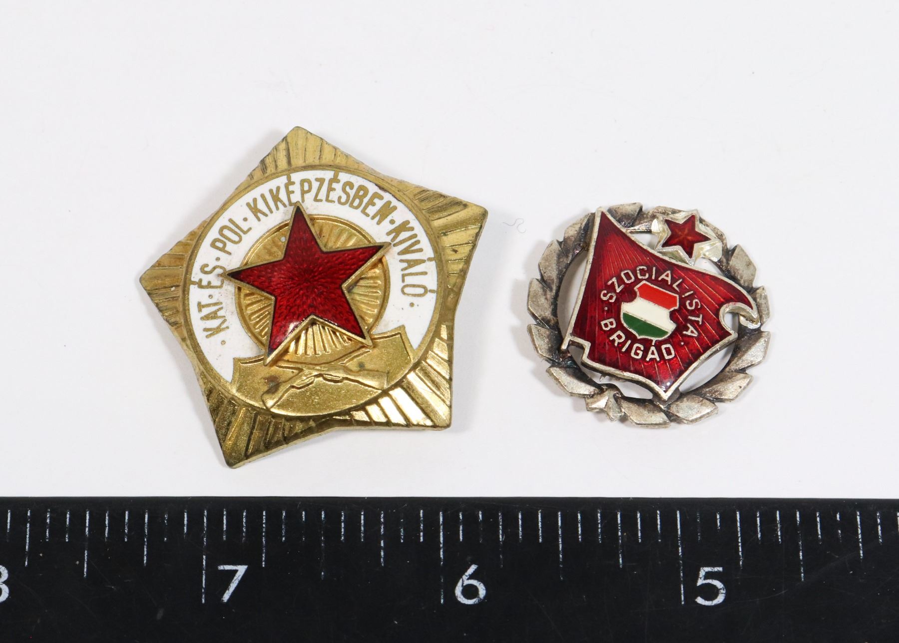 1970 1980 EXCELLENCE IN MILITARY AND POLITICAL TRAINING OFFICER BADGE HUNGARY COLD WAR ERA SOVIET MILITARY FORCES INSIGNIA, AND USSR COMMUNIST HUNGARIAN MEMBER BADGE 1950'S 60'S SOCIALIST BRIGADE HUNGARIAN HUNGARY COLD WAR ERA SOVIET INSIGNIA MILITARY FORCES