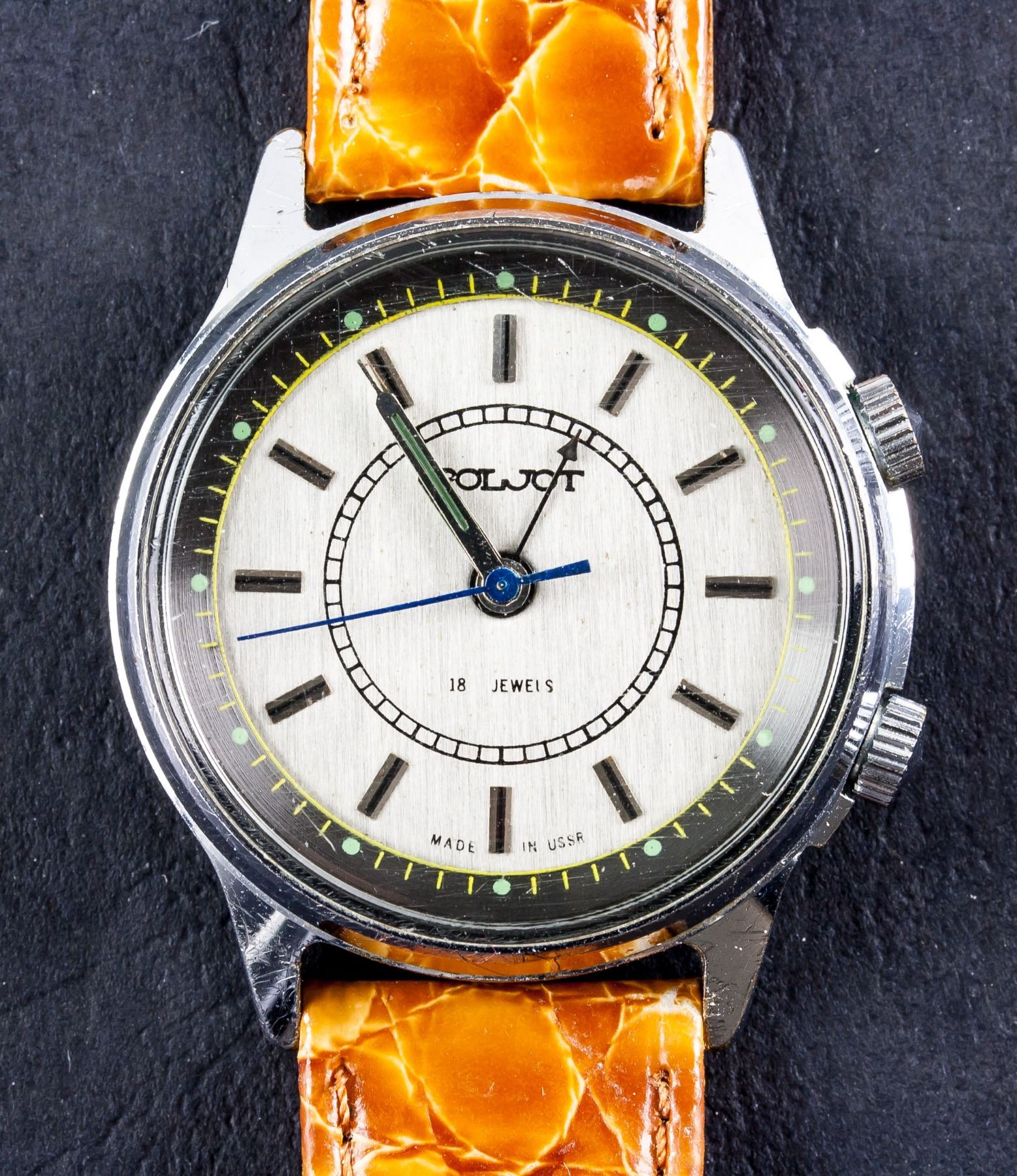 Poljot 18 Jewels watch, made in USSR, leather band, in working condition, D: 3.4 cm, L: 25 cm, 47 grams