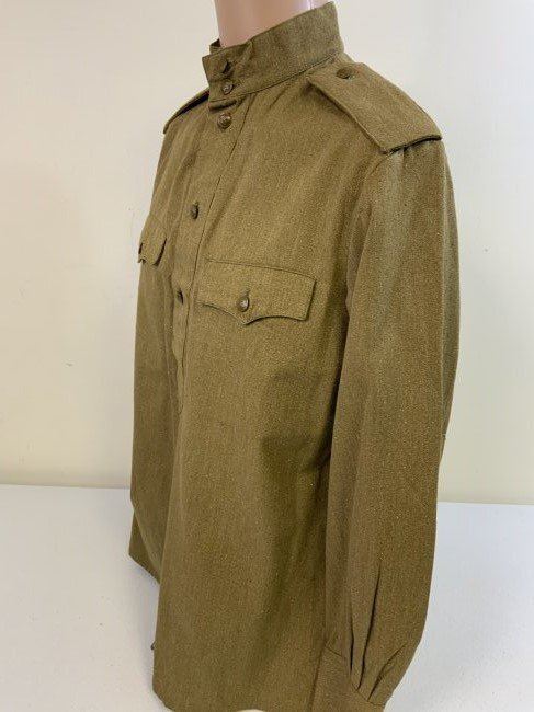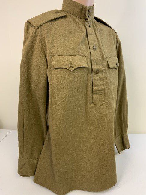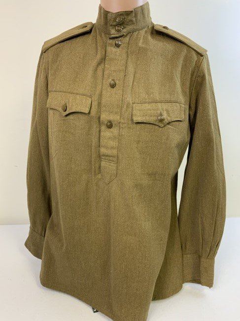 USSR SOVIET ARMY ENLISTED M43 WWII TYPE GIMNASTYORKA UNIFORM SHIRT . MINT , NEVER USED CONDITION . IDENTICAL TO WWII PRODUCED SHIRTS. DATED 1968. LARGE SIZE .