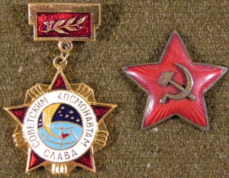 USSR SOVIET WWII ERA RED STAR/ENAMEL W/HAMMER & SICKLE & MEDALMEDAL APPEARS TO BE POST-WWII