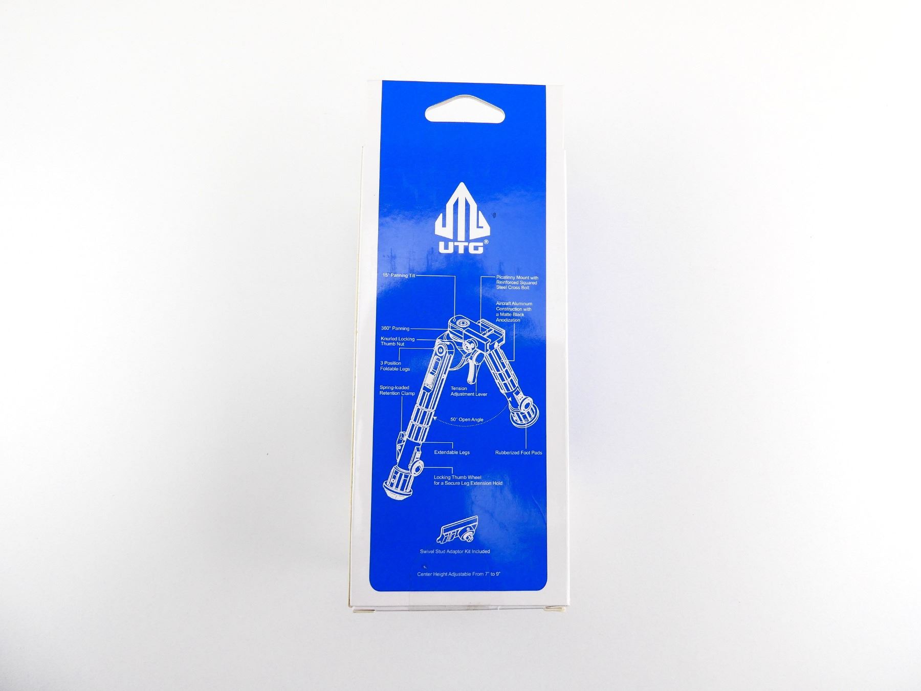 (1) BLACK ALUMINIUM BIPOD, WITH RUBBER FEET, SLING SWIVEL STUD ATTACHMENT, WITH MOUNT, SPRING LOADED LEGS, ADJUSTABLE LEGS FROM 7" TO 9", PART #: TL-BP01-A, NOS IN ORIGINAL PACKAGING. SEE PHOTOS.