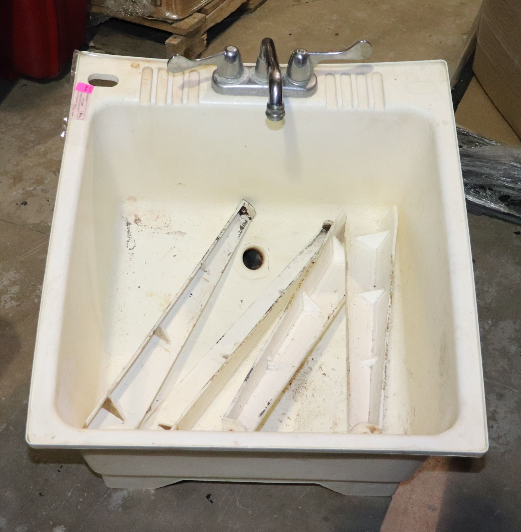UTILITY SINK WITH FAUCET, DAMAGE TO DRAIN AREA
