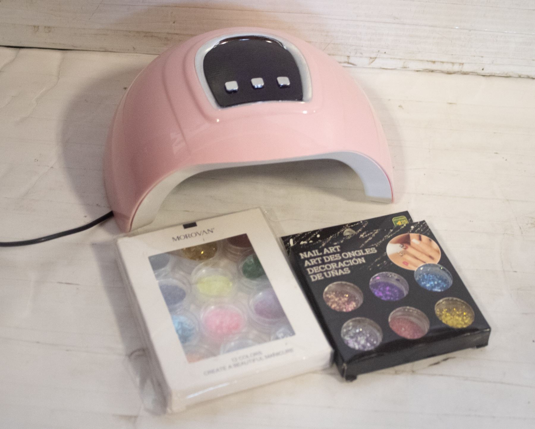 TESTED AND WORKING PINK NAIL DRYER FOR CURING NAIL POLISH GEL, NAIL ART GLITTER IN VARIOUS COLORS (LOT OF 3)