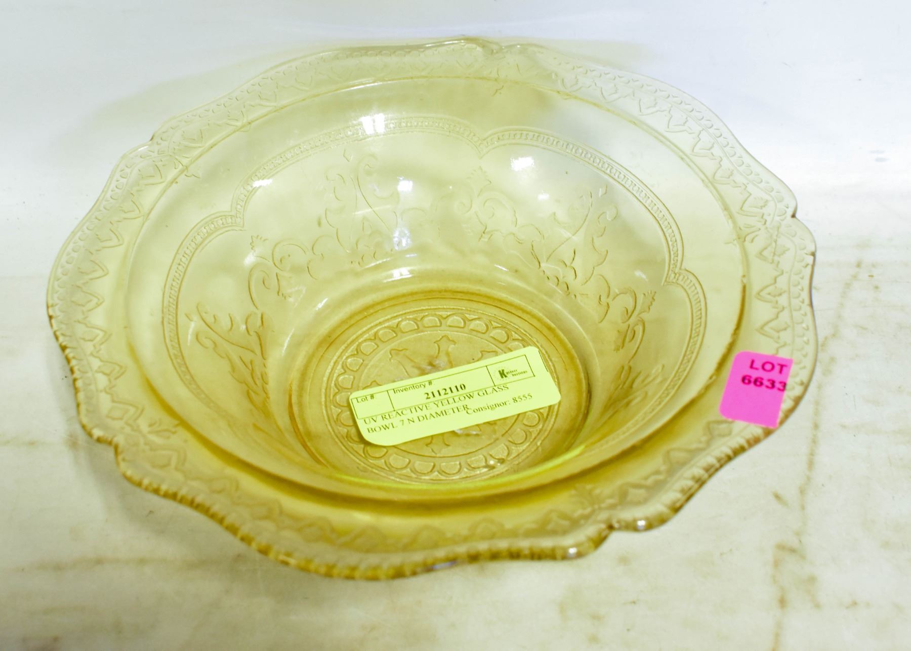 UV REACTIVE YELLOW GLASS BOWL 7 N DIAMETER