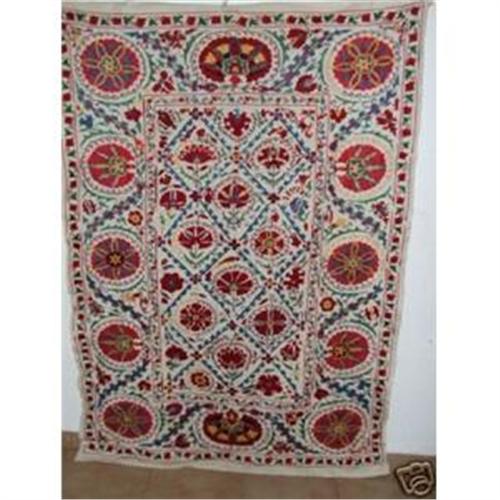 <P> </P> <P> </P> <P> </P> <P> UZBEK SILK HANDMADE EMBROIDERY SUZANI </P> <P> </P> <P> </P> <P>The meaning of the word suzani is a "needle work".</P> <P> </P> <P>Its origin is from Uzbekistan, and the suzani is mainly produced in the following cities: Tashkent, Buchara and Smarkand.</P> <P> </P> <P>150 years ago, women didn't go to school.</P> <P> As a result, their main employment was to weave.</P> <P>This occupation was taught by a mother to her daughter and so on.</P> <P>The fabric itself was woven in a loom and its width was between 20 cm-50cm.</P> <P>After the suzani was woven, the strips were attached together.</P> <P>The embroidery threads were woven from silk worm and they were painted by natural colors.</P> <P> </P> <P> </P> <P>Item description:</P> <P> </P> <P>The suzani that are being sold by me is</P> <P>hand made only! </P> <P> </P> <P>SILK HANDMADE EMBROIDERY</P> <P> </P> <P>Excellent condition </P> <P> </P> <P>Age: about 40 years old</P> <P> </P> <P>Size: 64x45 inches (163x114c"m)</P> <P> </P> <P>
