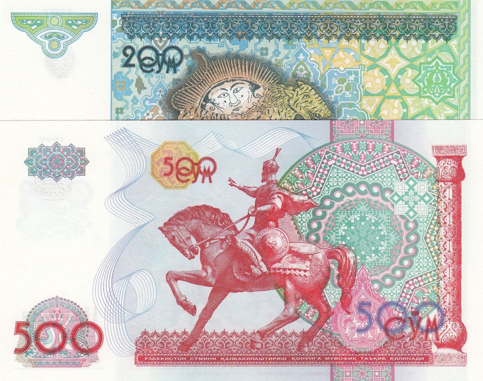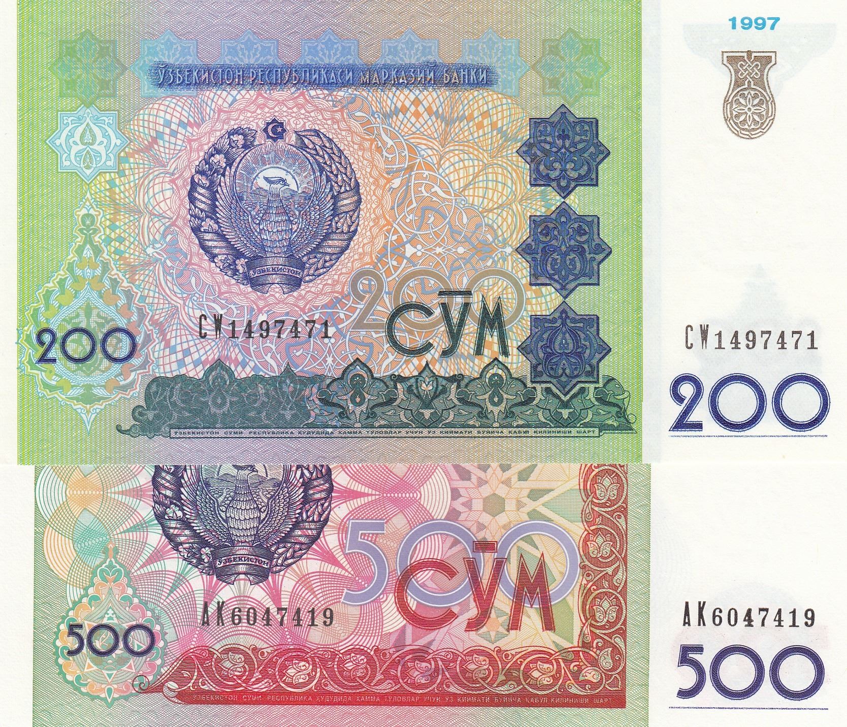 Uzbekistan, 200 Sum and 500 Sum, 1997/1999, UNC, p80/p81, (Total 2 banknotes)