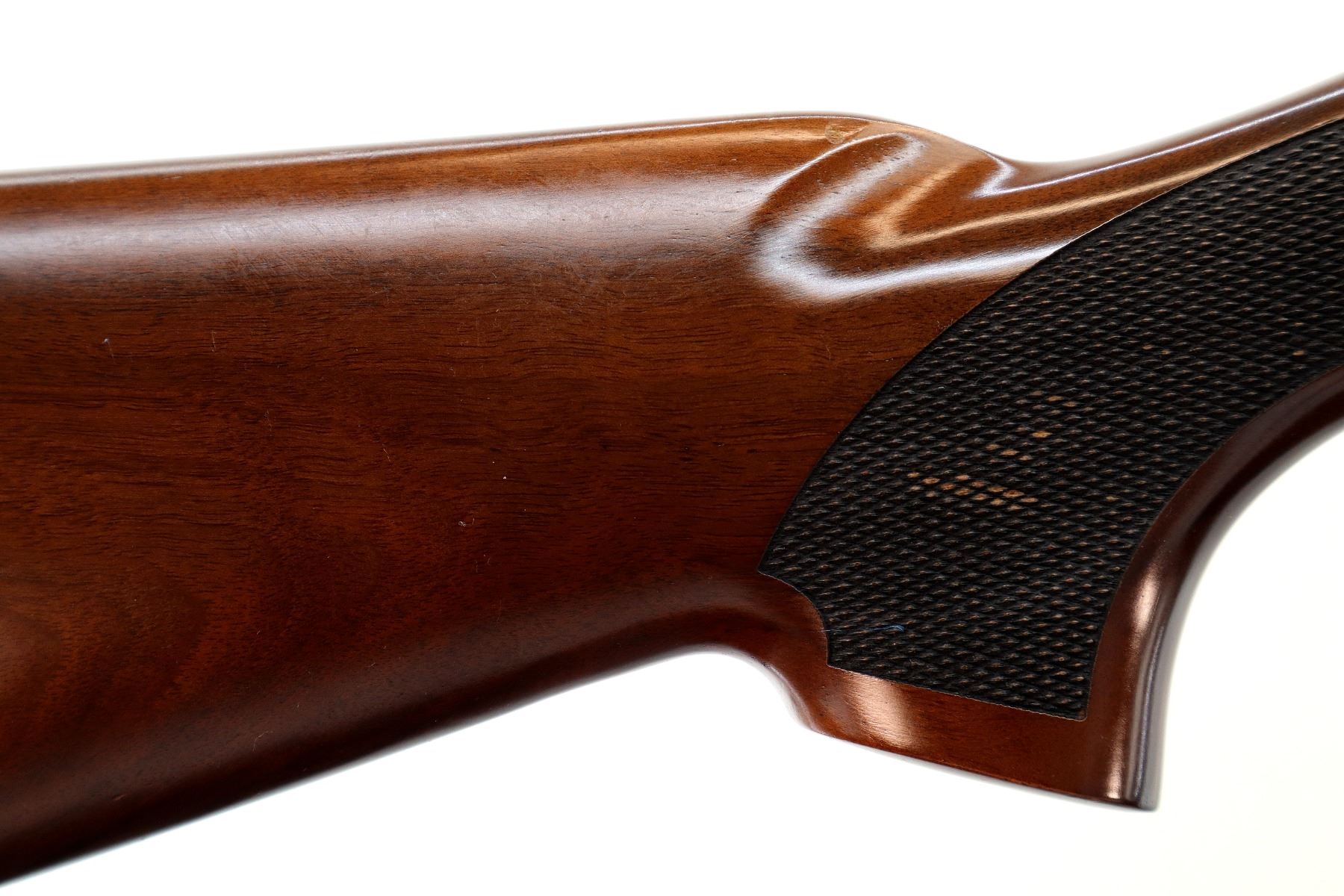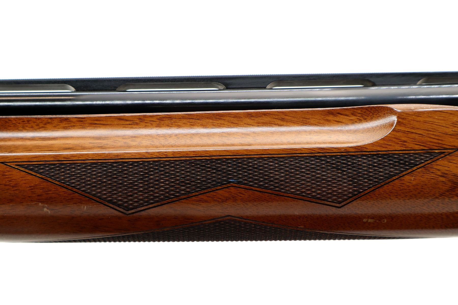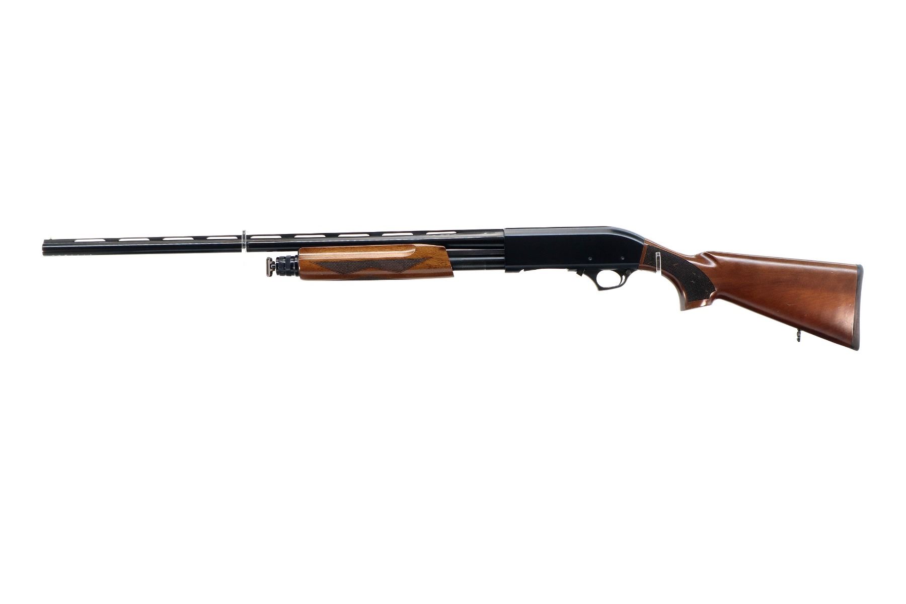 Main Description: Brass bead, blued vent rib barrel, grooved black alloy receiver. Two piece wood stocks, finger grooved checkered forearm and pistol grip, black rubber recoil pad, sling swivels.