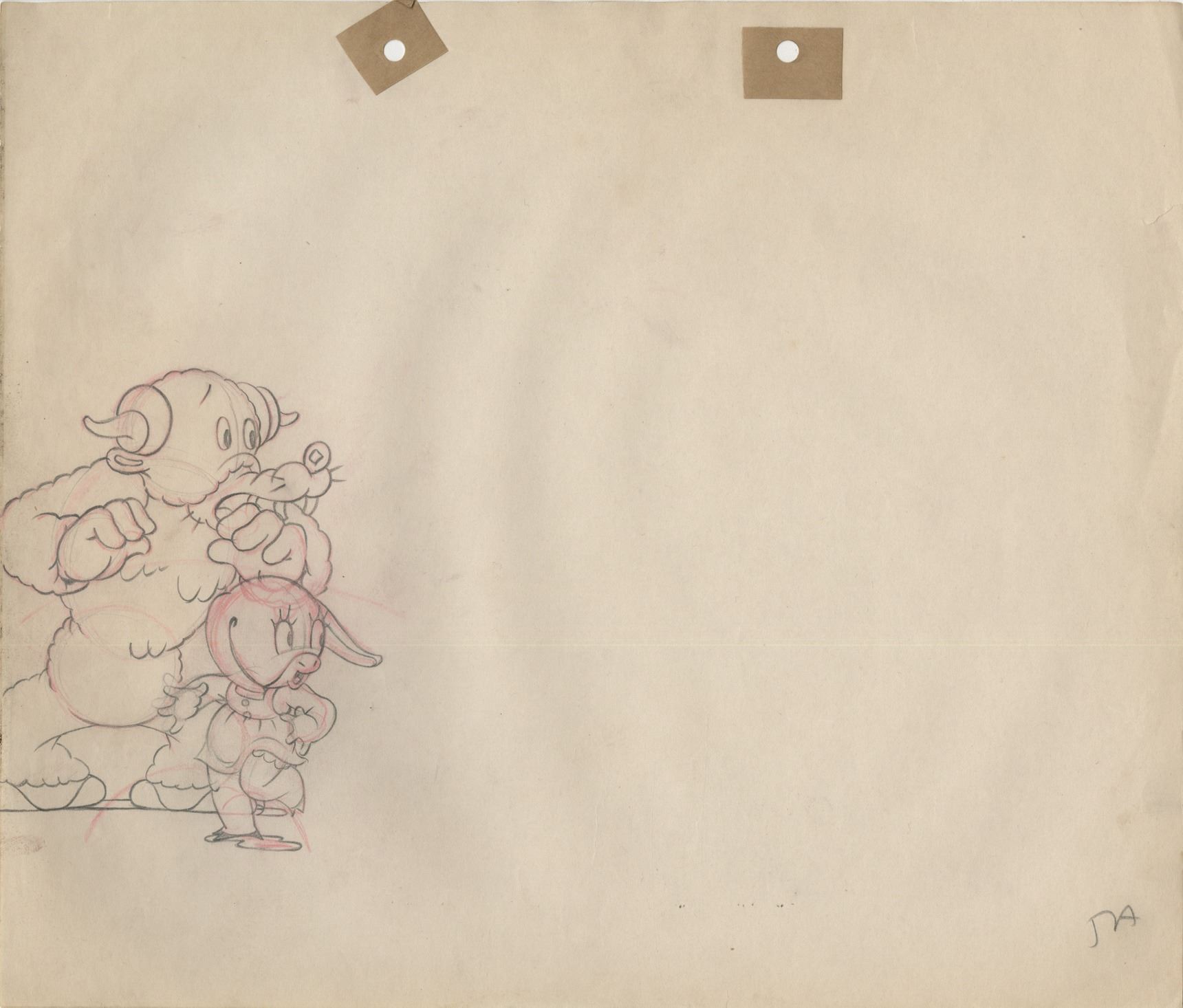 362. Ub Iwerks Columbia Studios (300+) animation drawings for Color Rhapsodies miscelaneous titles. (Columbia, 1938) Vintage original (300+) animation drawings accomplished in graphite and colored pencil on 10 x 12 in. animation paper. Legendary Disney artist Ub Iwerks drew the first "Mickey Mouse" cartoons, including Steamboat Willie. When Iwerks and Disney parted ways, Iwerks entered into a contract with Charles Mintz of Columbia Studio where he was responsible for drawing half of the Color Rhapsodies produced from 1936 to 1940. This lot may include drawings from The Foolish Bunny (1938), Two Lazy Crows (1936), Mother Hen's Holiday (1937) and cartoons featuring "Krazy Kat" and "Scrappy" and more. Exhibiting production wear, age and some soiling and staining. Drawings range in condition from very good to very fine. $600 - $800
