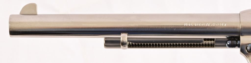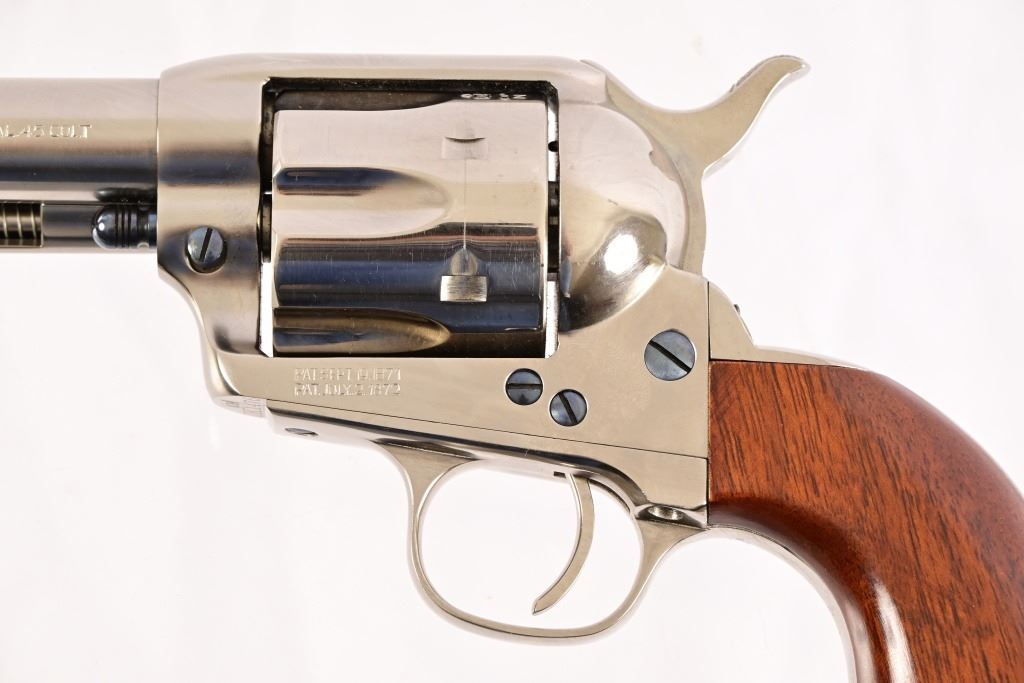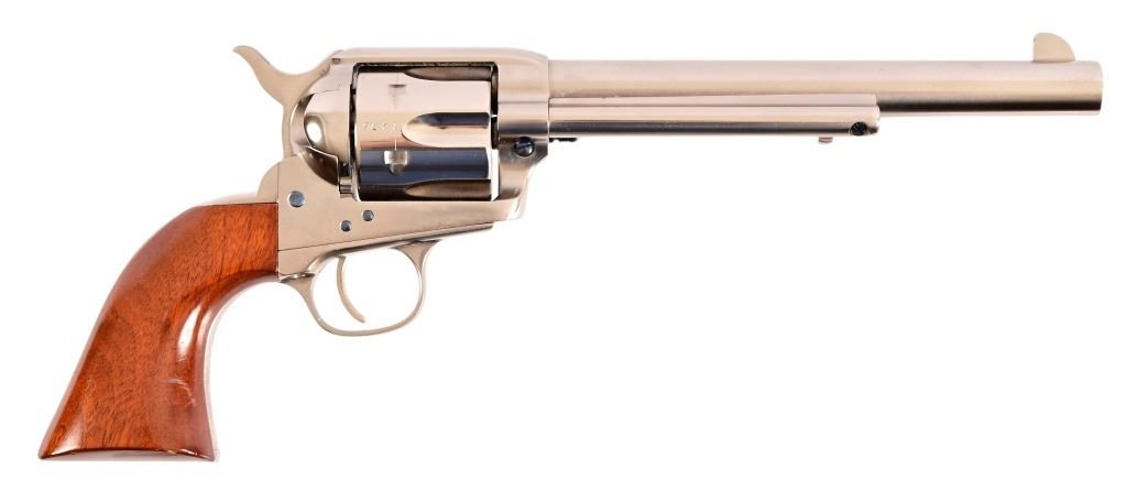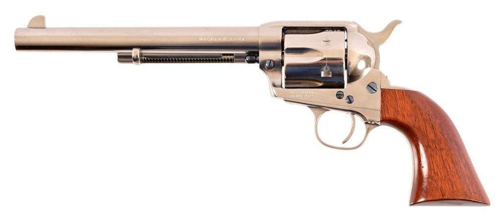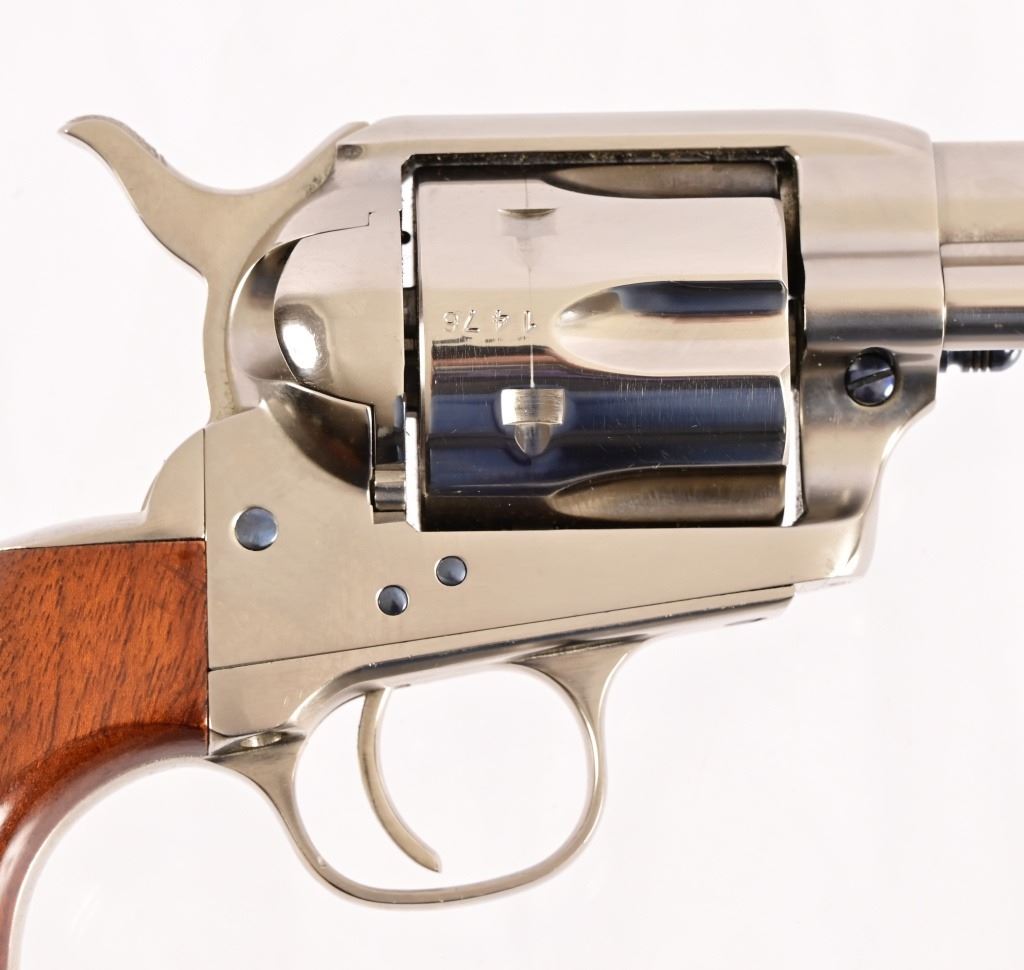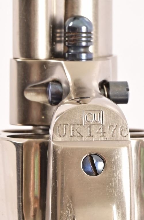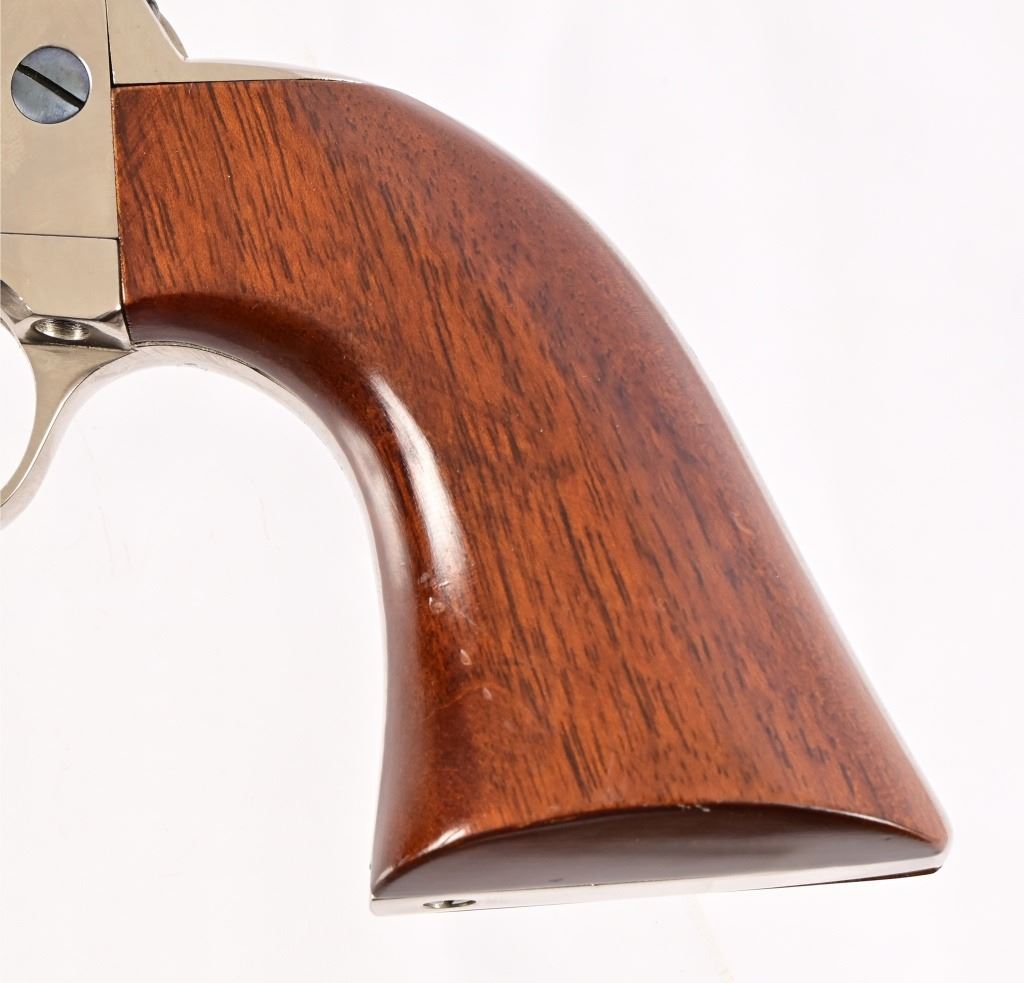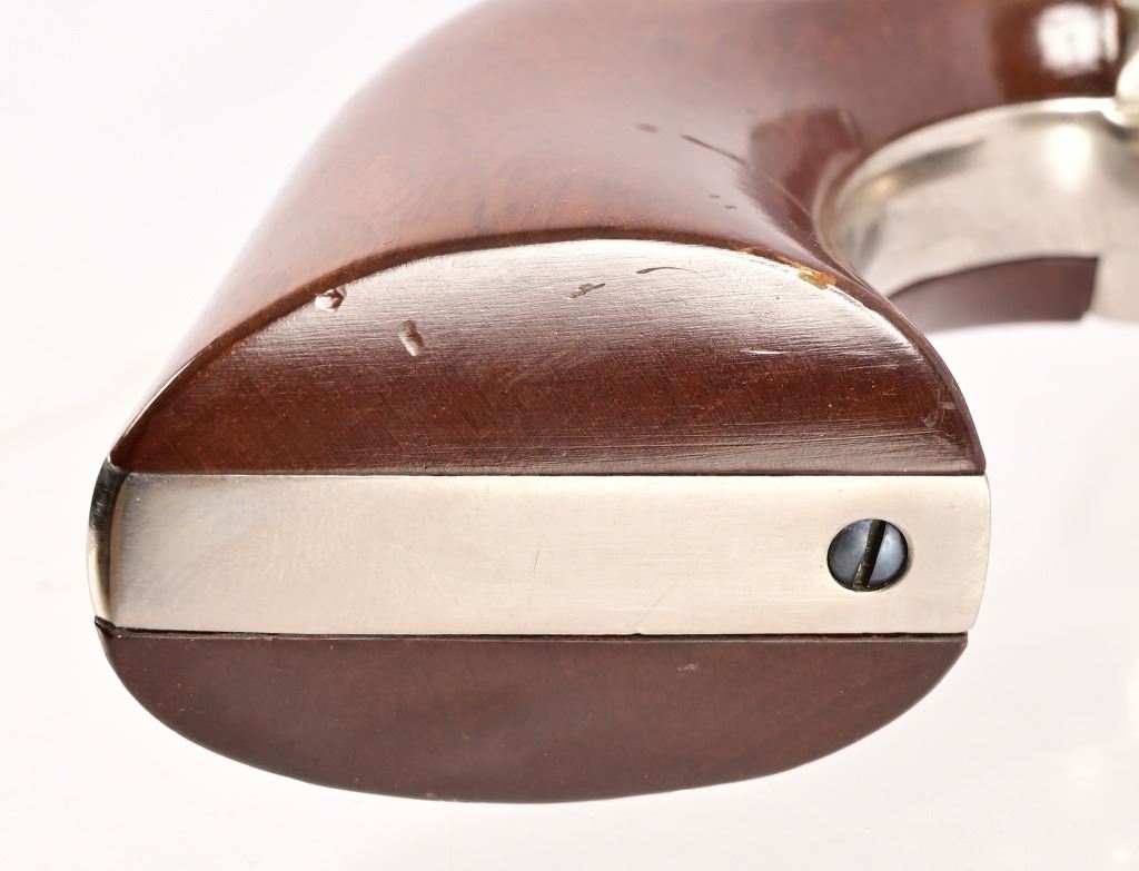 SN UK1476. 7.5" barrel. Nickel, in good condition. Wood grips. Modern.