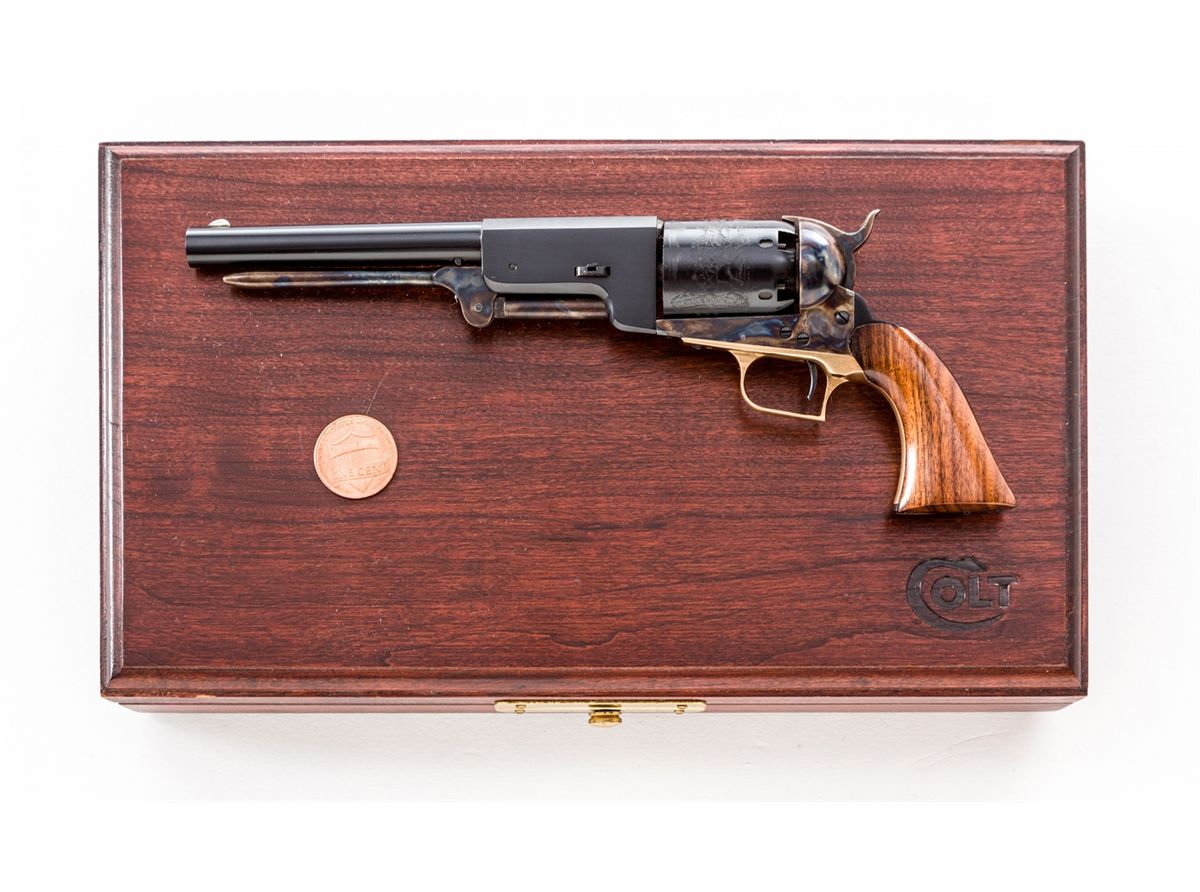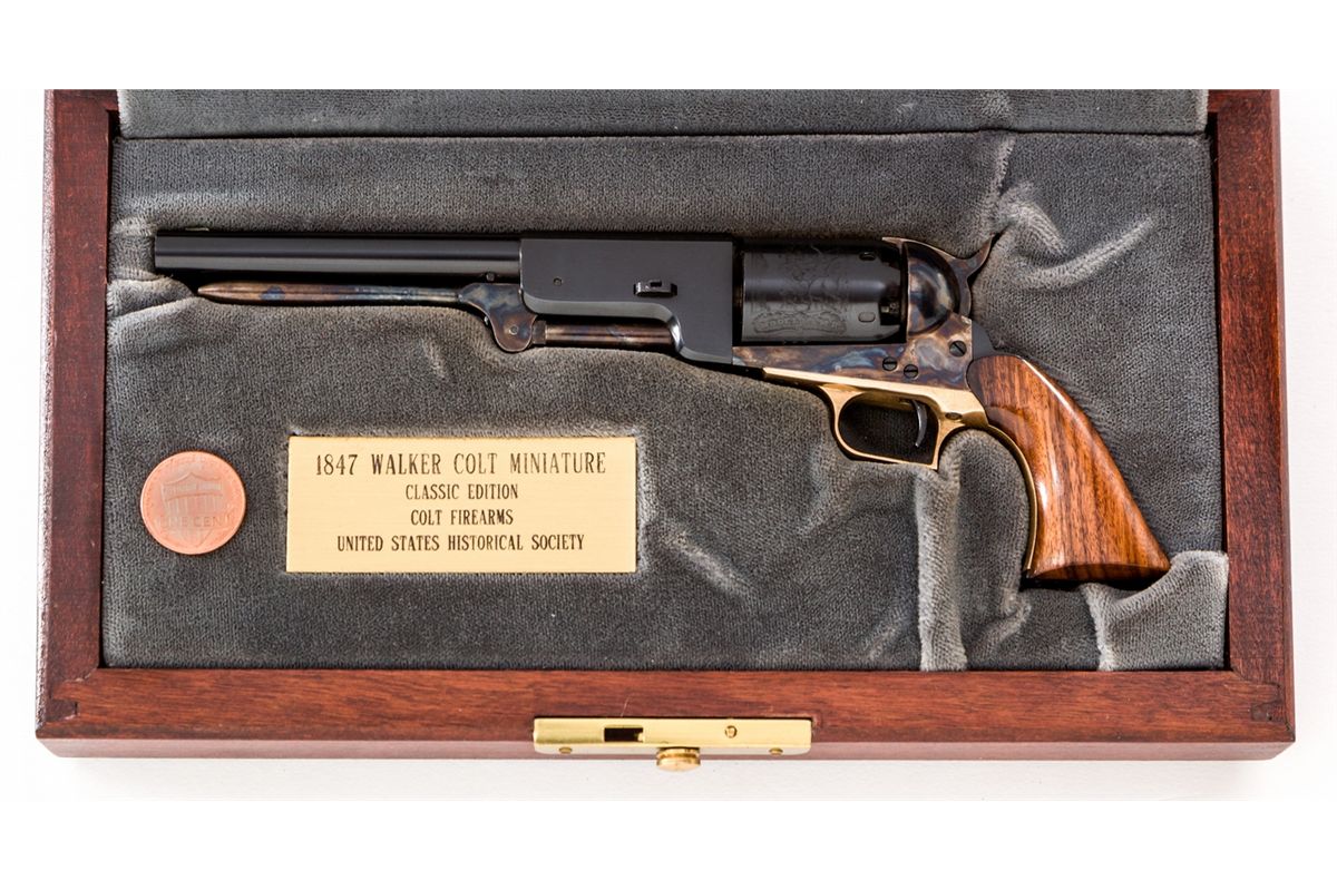Uberti Miniature Walker Percussion Revolver, #253, by the U.S. Historical Society, in grey velveteen lined dark stained wood case with Colt logo. Condition is excellent. A very high quality miniature. Est.: $500-$750.