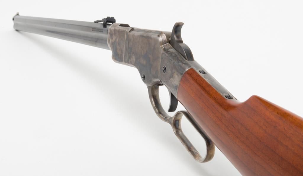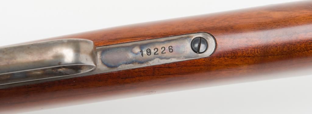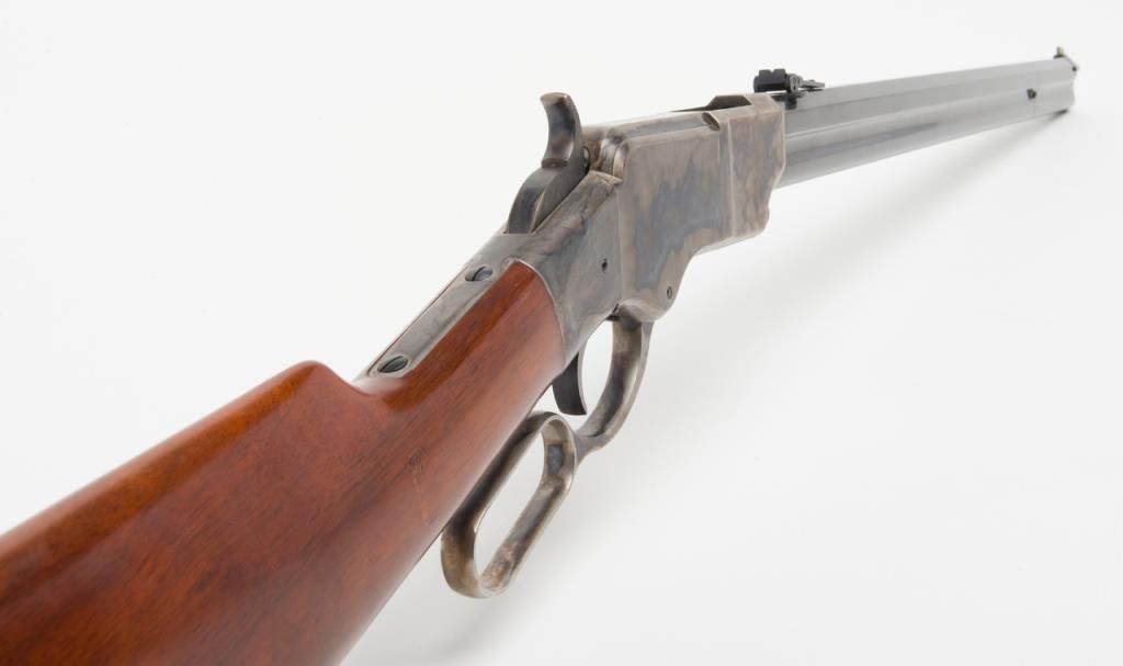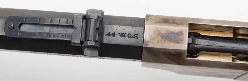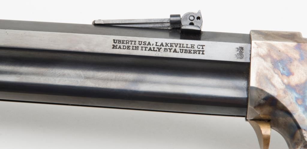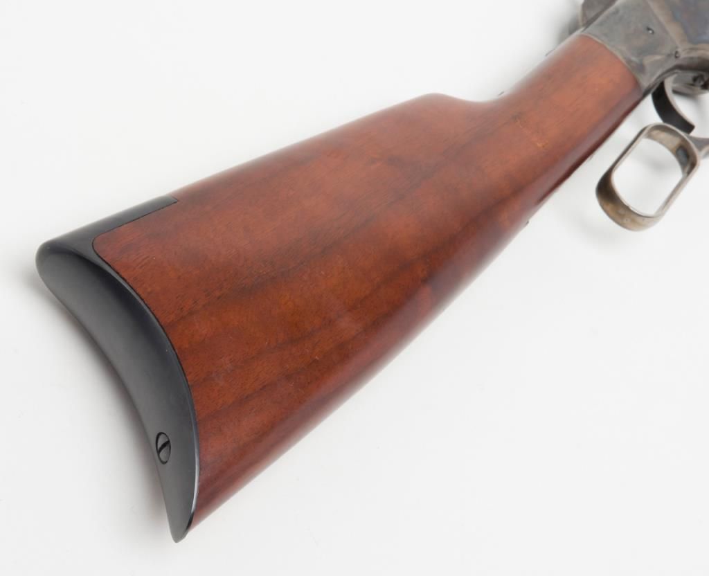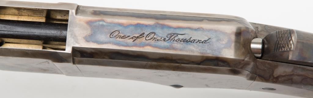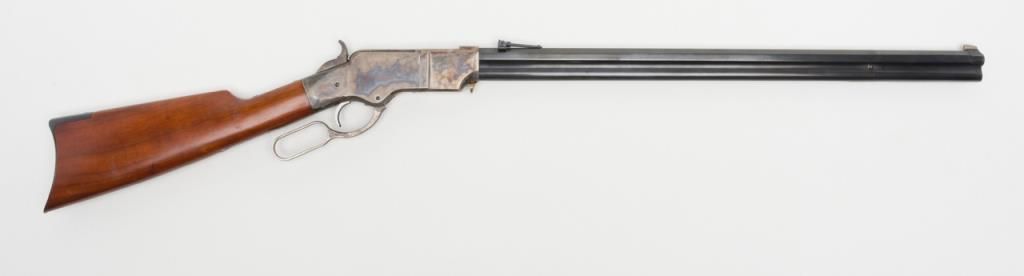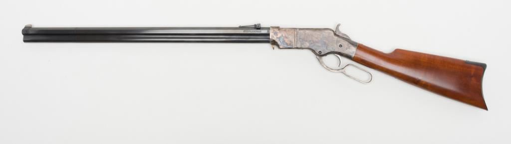 Uberti Modern copy of a Henry rifle, .44 W.C.F. cal., 24-1/2” octagon barrel, blue and case hardened finish, wood butt stock, #19226 marked “One of One Thousand” on top of the receiver; in overall fine condition showing little use orhandling. (Modern). Est.: $400-$800.