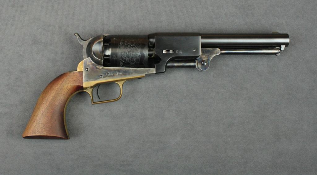 Uberti copy of a Colt First Model Dragoon percussion revolver, .44 blackpowder caliber, 7-1/2” barrel, blue and case hardened finish, wood grips, #01024. This gun is in overall like new condition showing littlehandling. Est.: $200-$400.