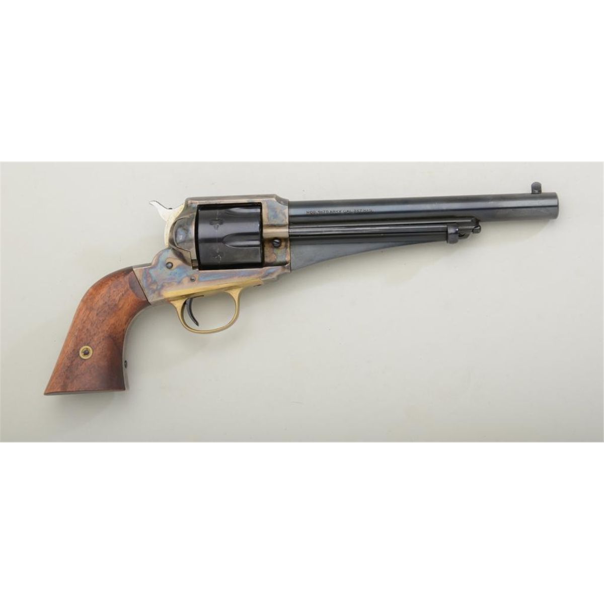 Uberti modern copy of a Remington Model 1875 single action revolver, .357 magnum cal., 7-1/2” barrel, blue and case hardened finish, wood grips, #11803. This gun is in overall excellent condition showing approx. 98%original finish, fine bore, crisp action, markings and fine grips. Great for the End of Trails events. Est.: $250-$450.