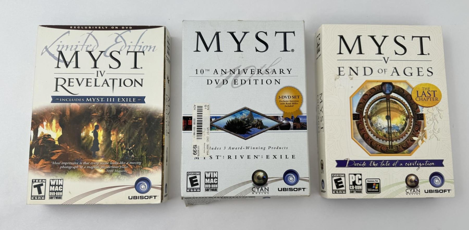 Myst IV Revelation, Myst 10th Anniversary DVD Edition, Myst V End of Ages.