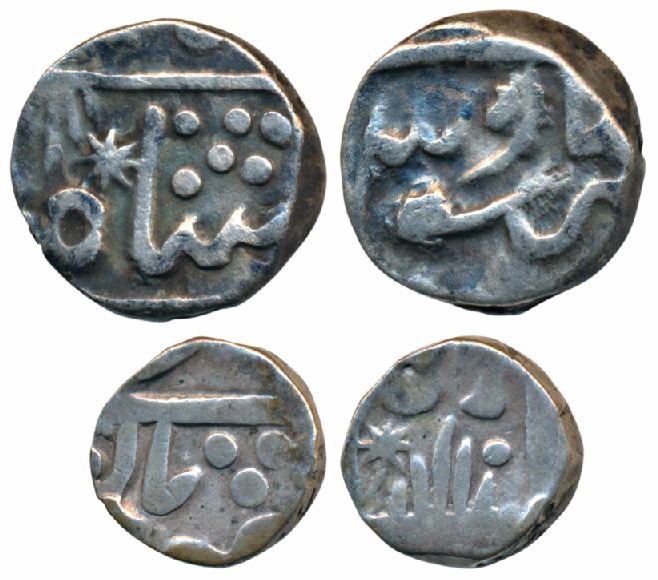 Udaipur Mint, Silver ½ and ¼ Rupee, in the name of Alamgir II, sun or star mint mark on both (KM Y43 & 32). Very Fine+, Rare. (2)
